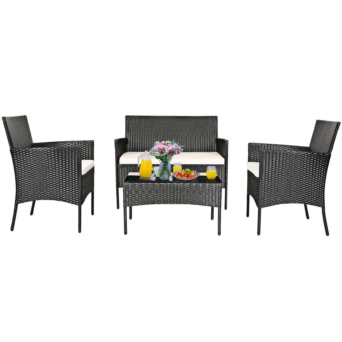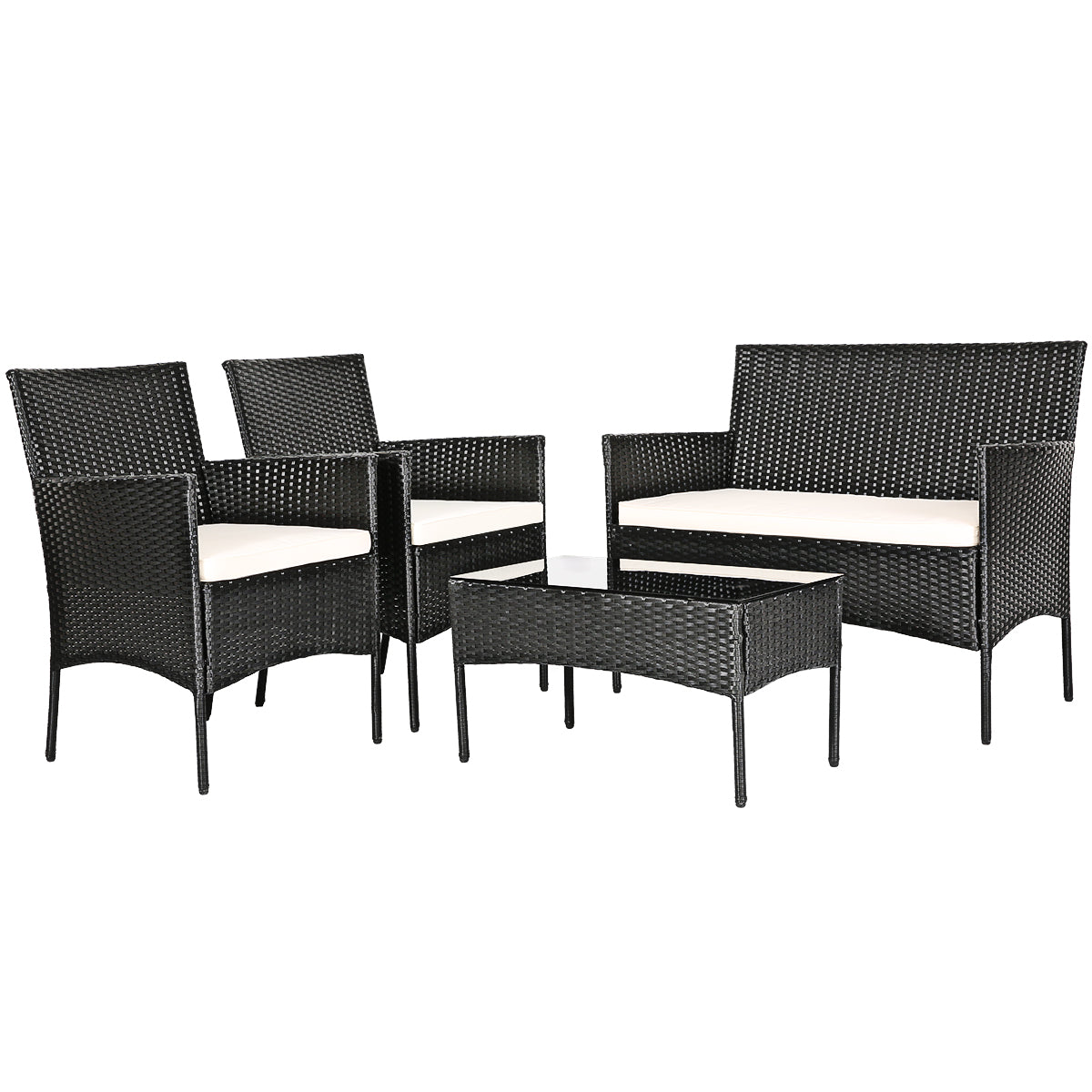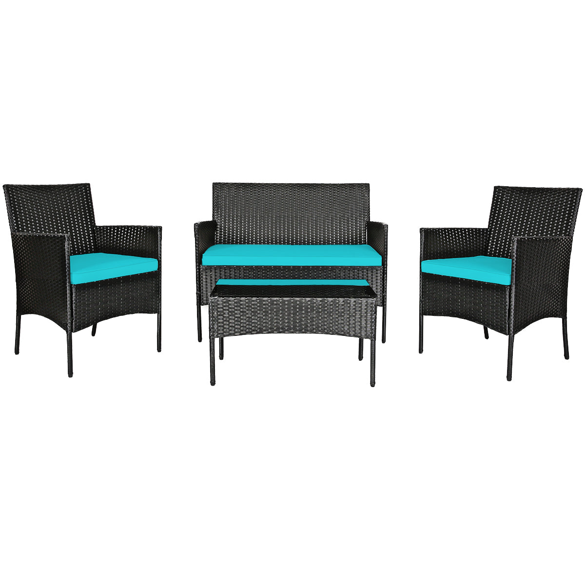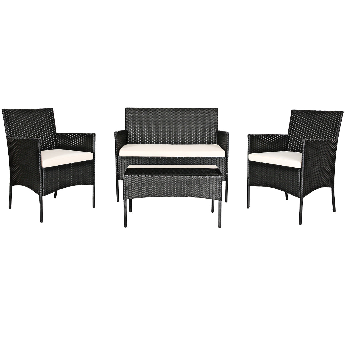 4 Pieces Patio Furniture Set: This furniture set includes 2 single chairs, 1 loveseat and a coffee table. 2 portable chairs can be easily moved to any place for use. And the wide loveseat offers ample space for two people to sit. Most importantly, it can be combined in a variety of ways to meet your different needs.