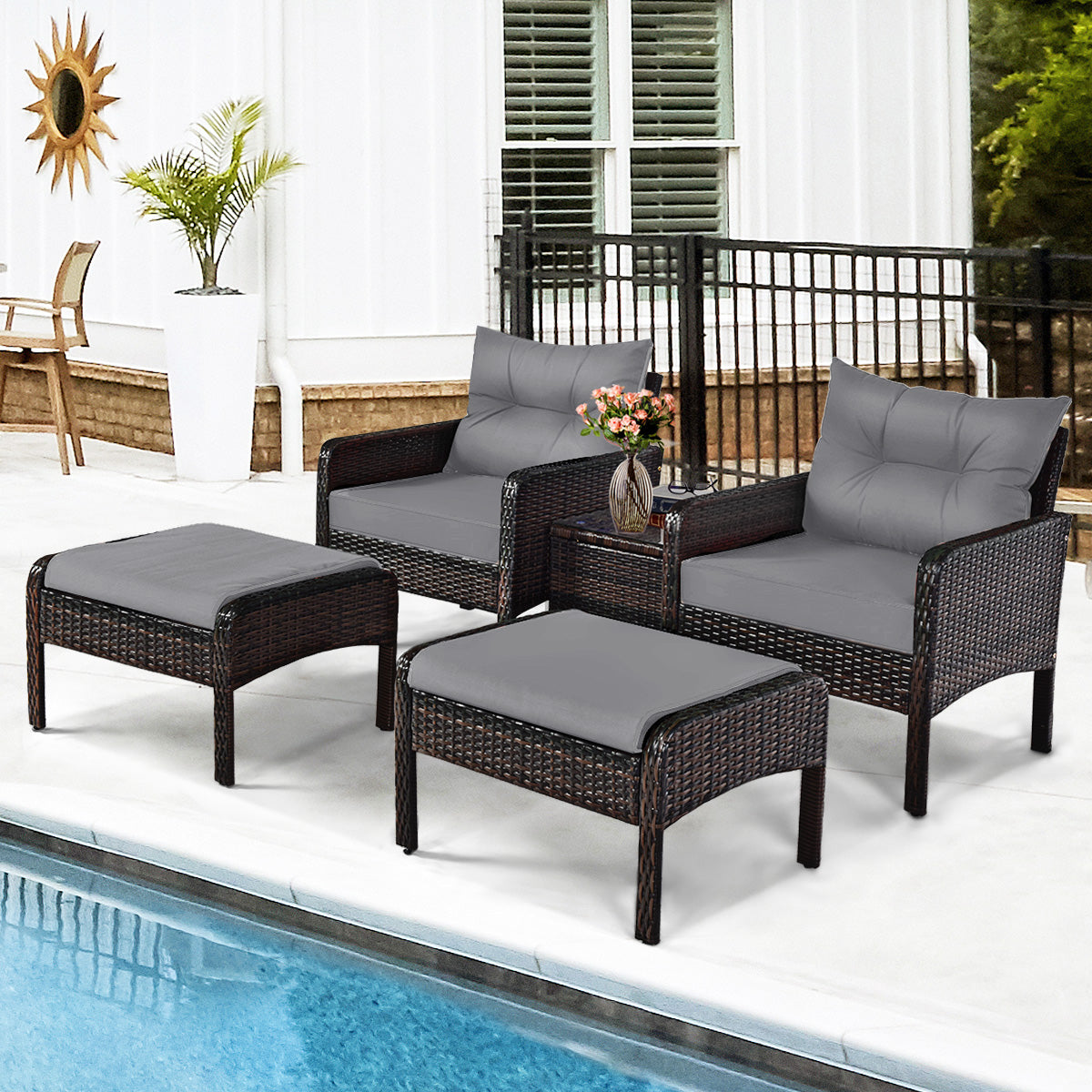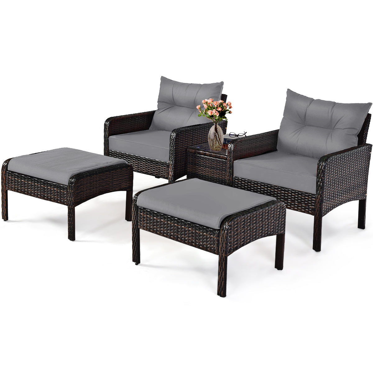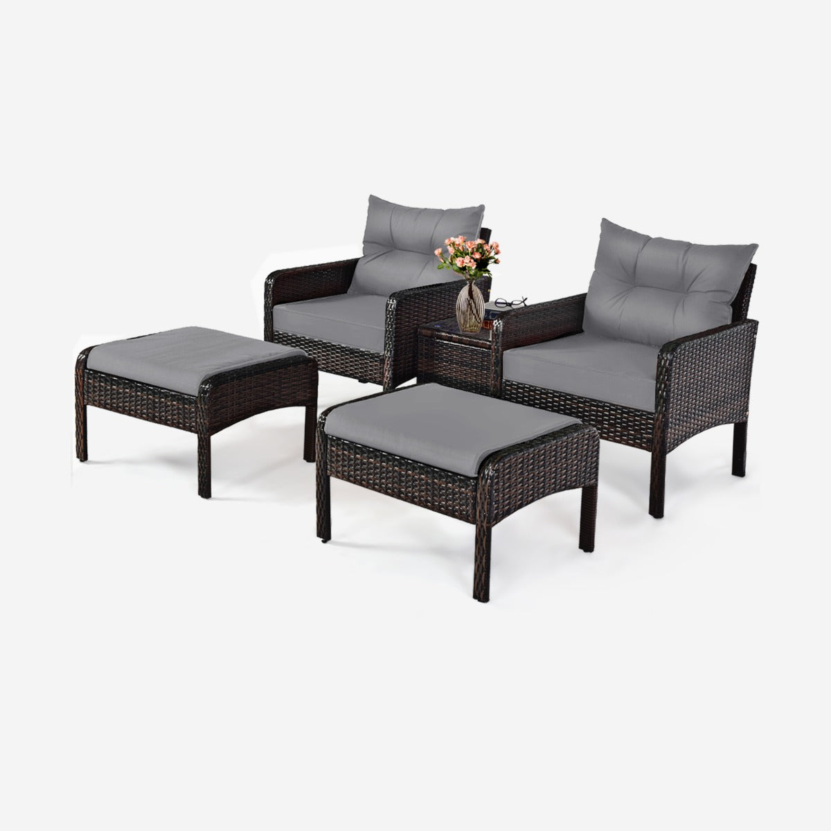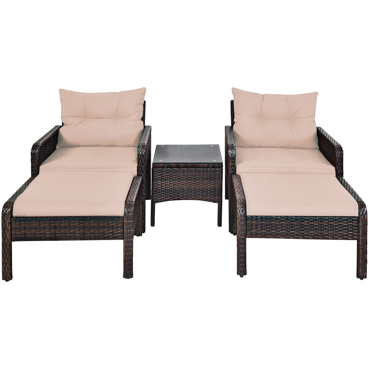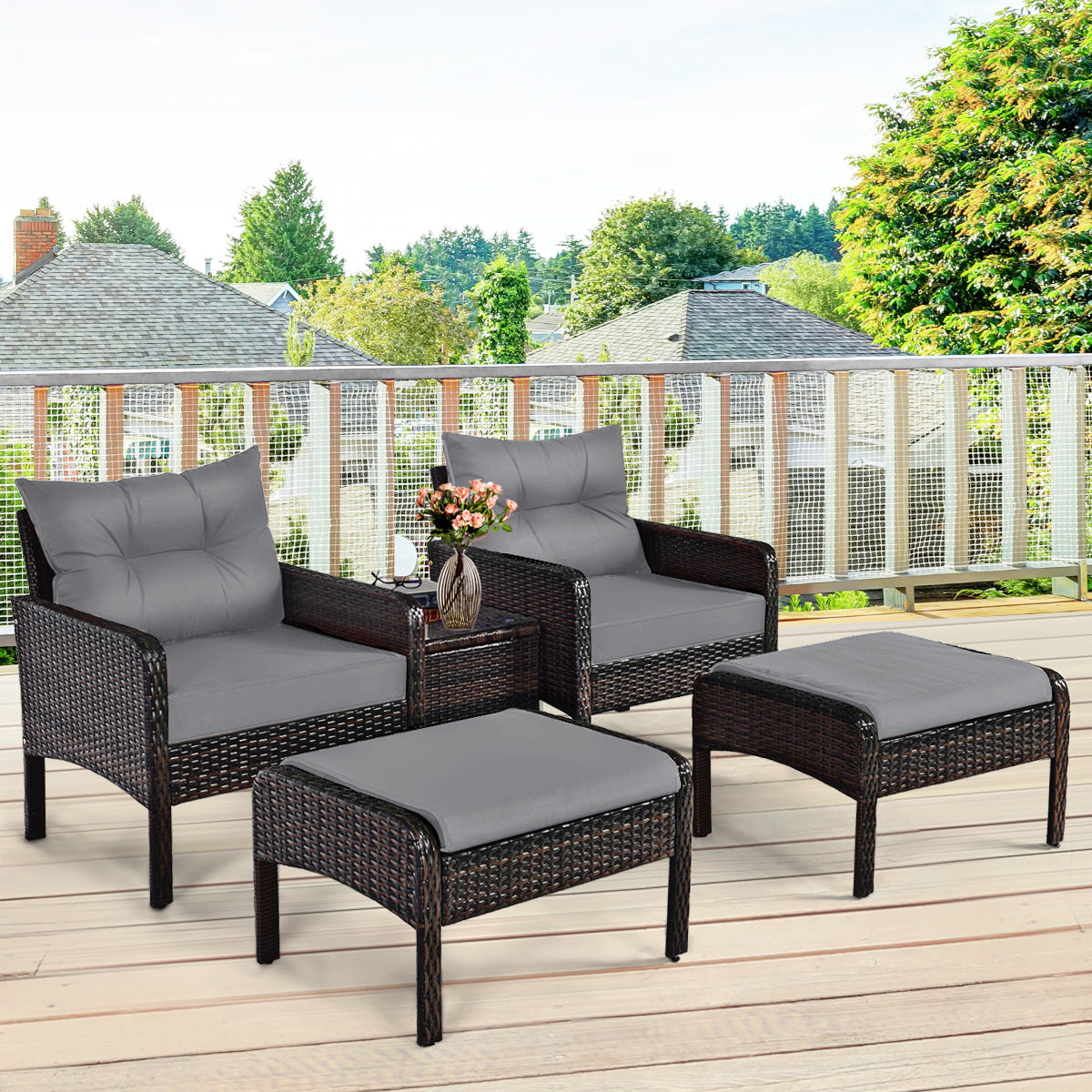 The rattan chair set adds more natural color to your yard with bright cushion and espresso brown rattan. This outdoor furniture set is crafted of weather-resistant hand-woven rattan and sturdy steel frame with powder-coated finish, which is durable enough to withstand rain and wind for long time use. Its thick sponge padded cushions and ergonomic back double the comfort for you to totally relax yourself. Cushion covers with quick zipper are removable for cleaning. This patio sofa set will let you enjoy fun with family and friends while also taking in the view and fresh air. Good choice for patio, porch, backyard, balcony, poolside, garden and other suitable space in your home.