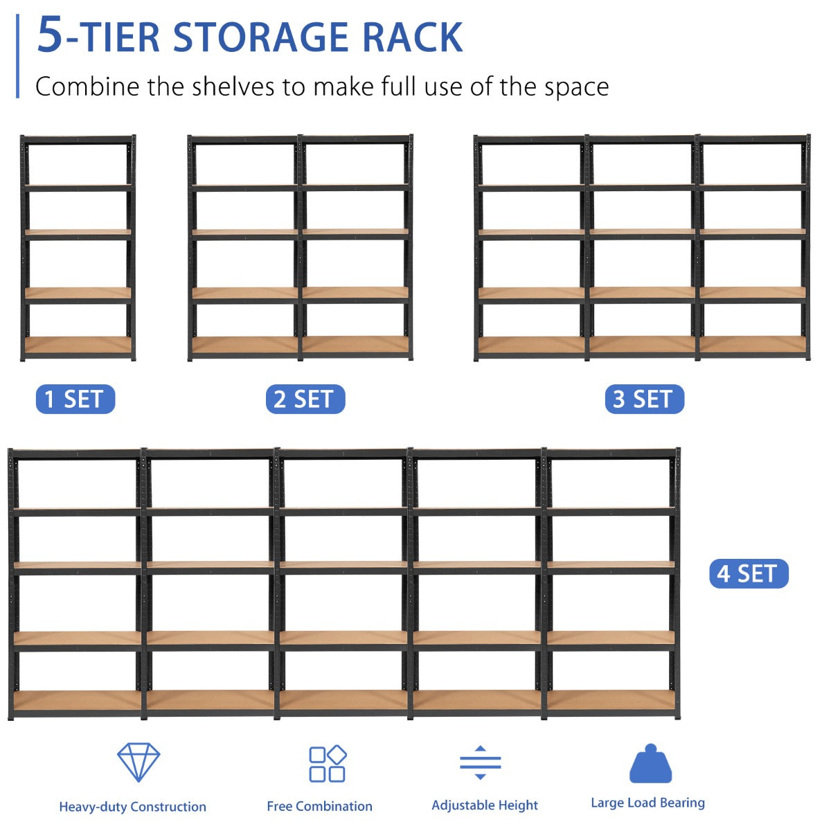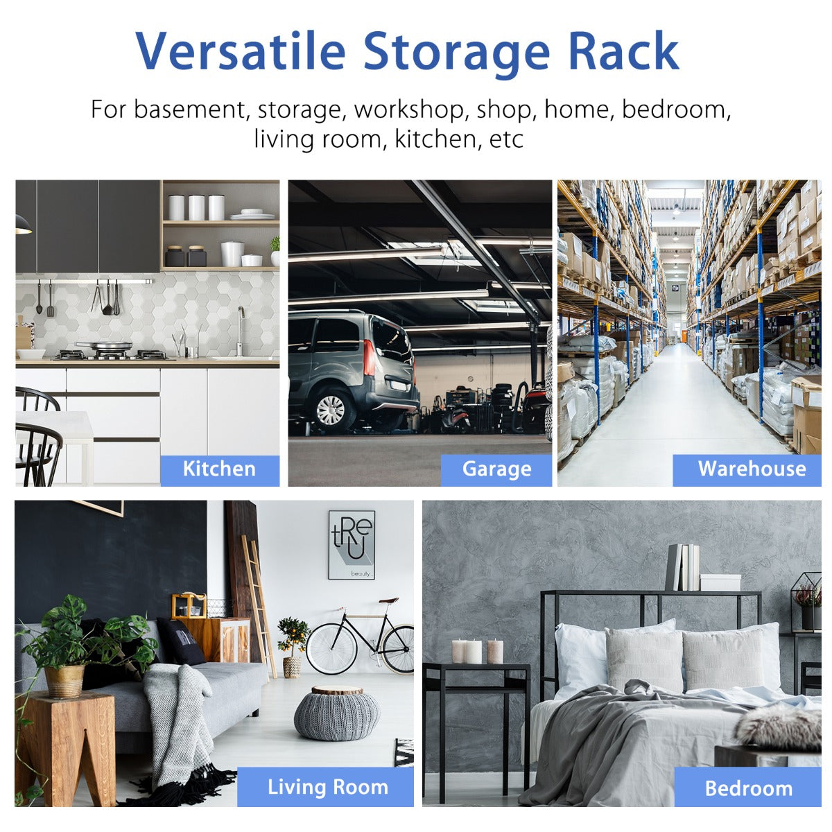 Multifunctional Shelving Unit: This 5-tier storage shelf can be used as a bookshelf, flower pot rack, luggage rack, shoe rack or to store anything you want to organize. In addition, this versatile storage unit is ideal for use in a variety of environments, including the garage, utility room, workshop, retail stores or for general use at home.