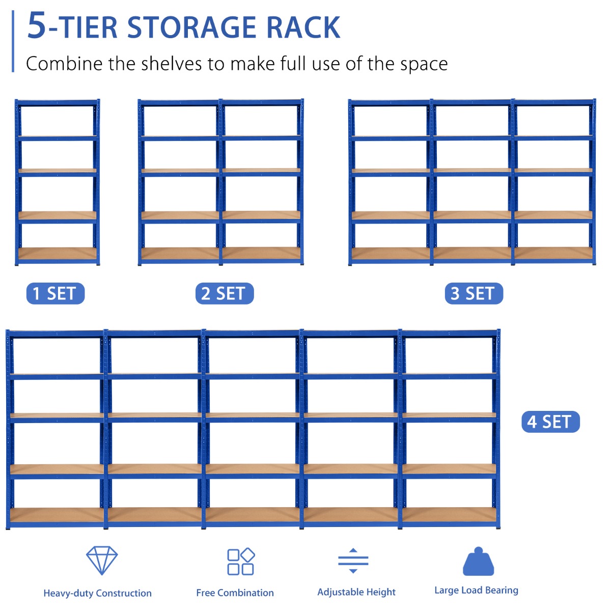 Extra Storage for Limited Space: This 5-tier shelving unit is perfect for use in areas with limited space and it can maximize your storage space in just a few minutes. If necessary, the 5-tier shelving can also be used individually or together with multiple shelves to make use of more storage space and fully meet your daily storage needs.