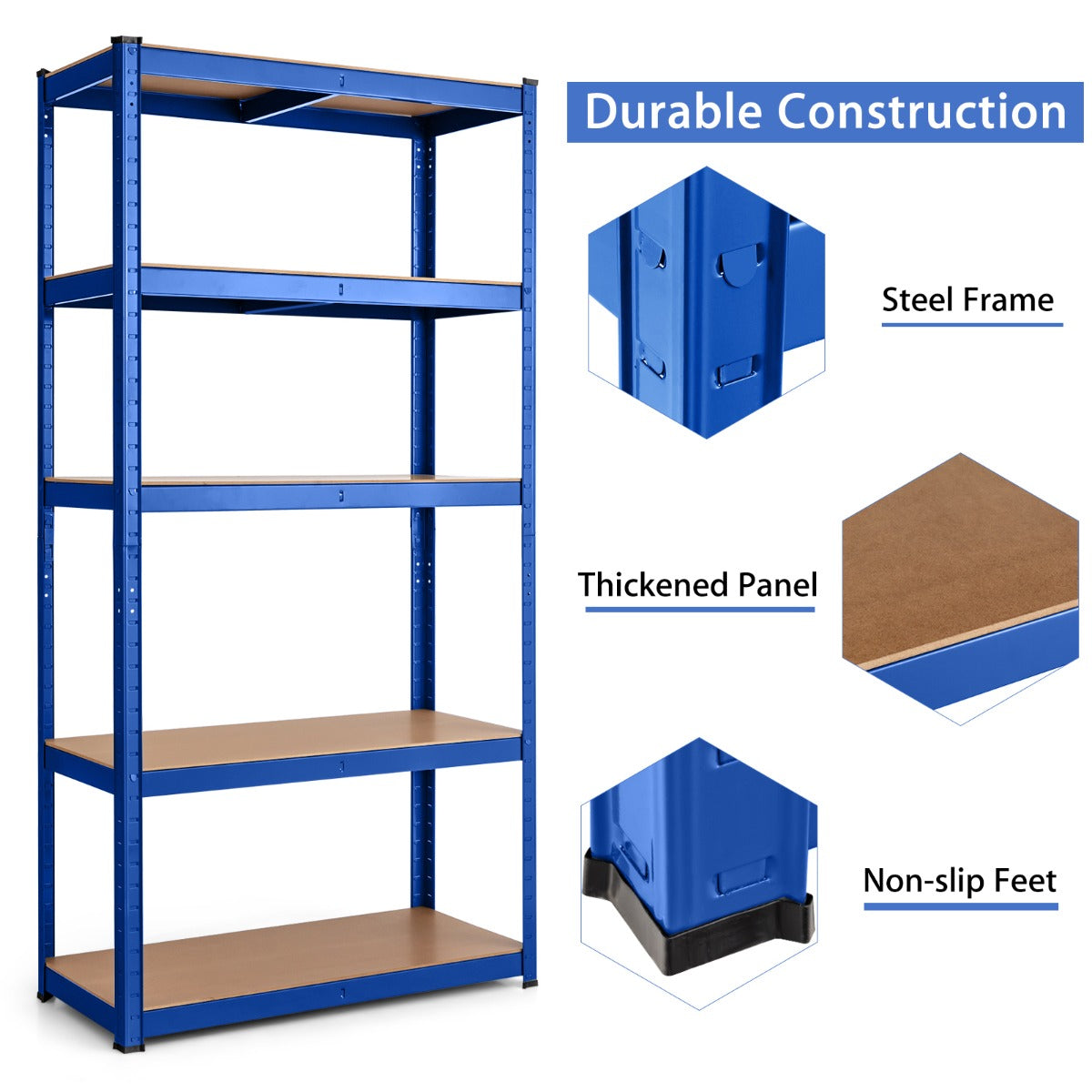 Our brand new 5-layer storage rack is extremely useful in organizing your tools, foods, books or other stuff. Powder-coated metal construction is sturdy and does not rust or corrode with normal use, The coating makes it looks much nicer and less industrial. You can adjust the height of each layer according to your demand, this flexible and space-saving storage rack is a great idea for a limited room that requires large storage space, such as a bathroom, doorway, entryway, garage, kitchen, pantry, laundry, office or closet.