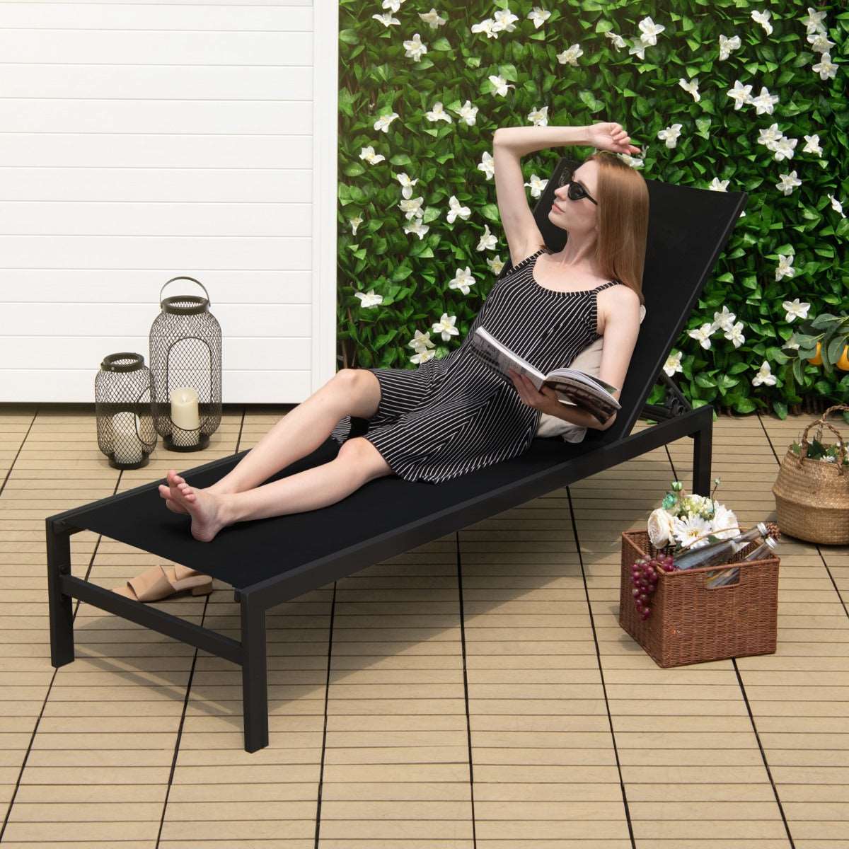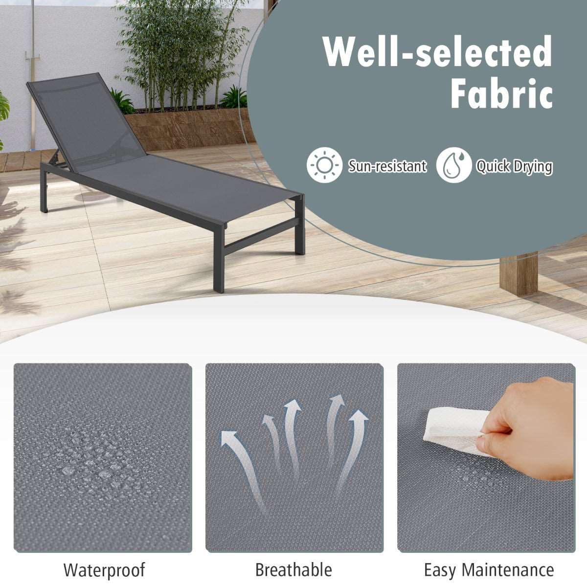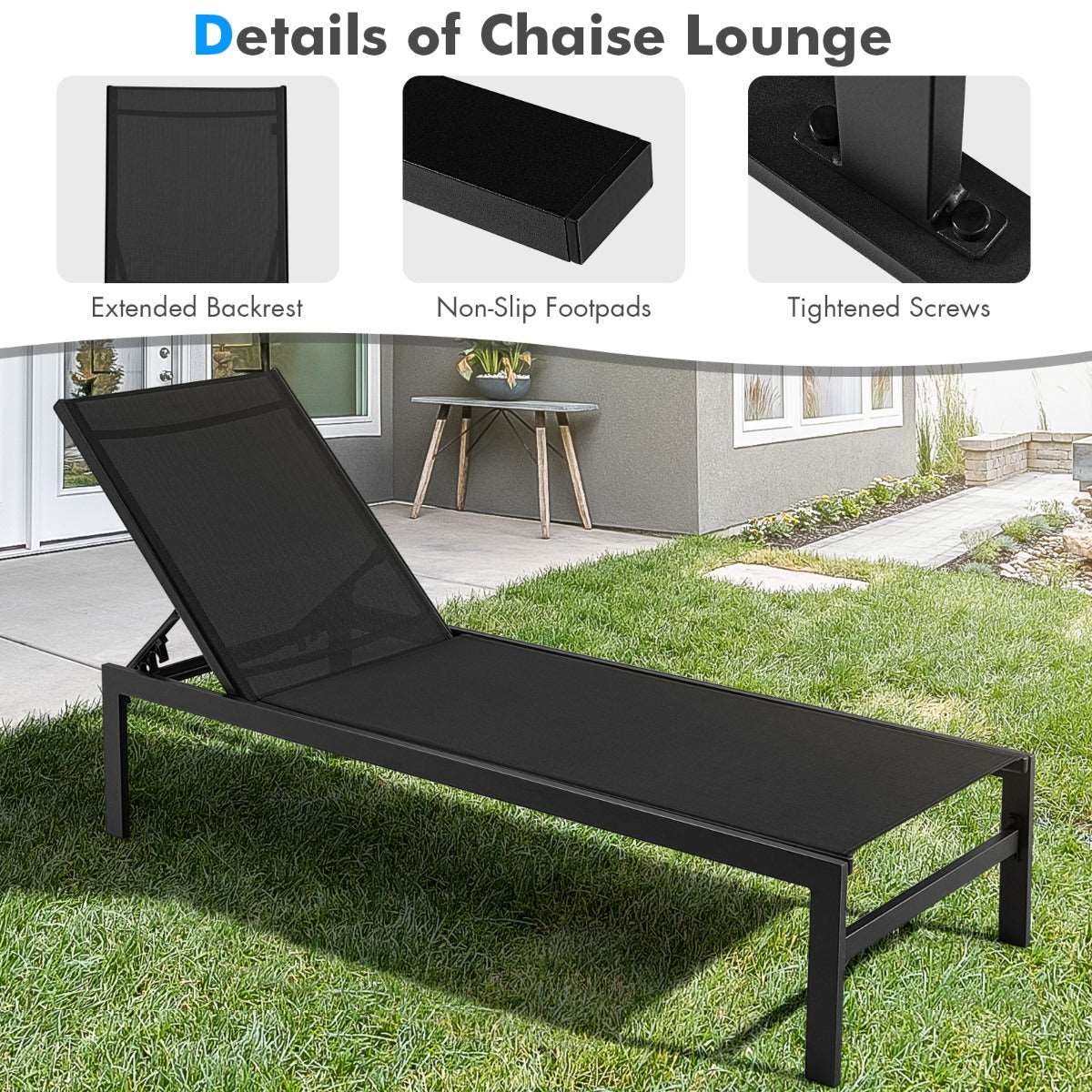 Aussies Market 6-Position Chaise Lounge Chairs with Rustproof Aluminium Frame for Patio