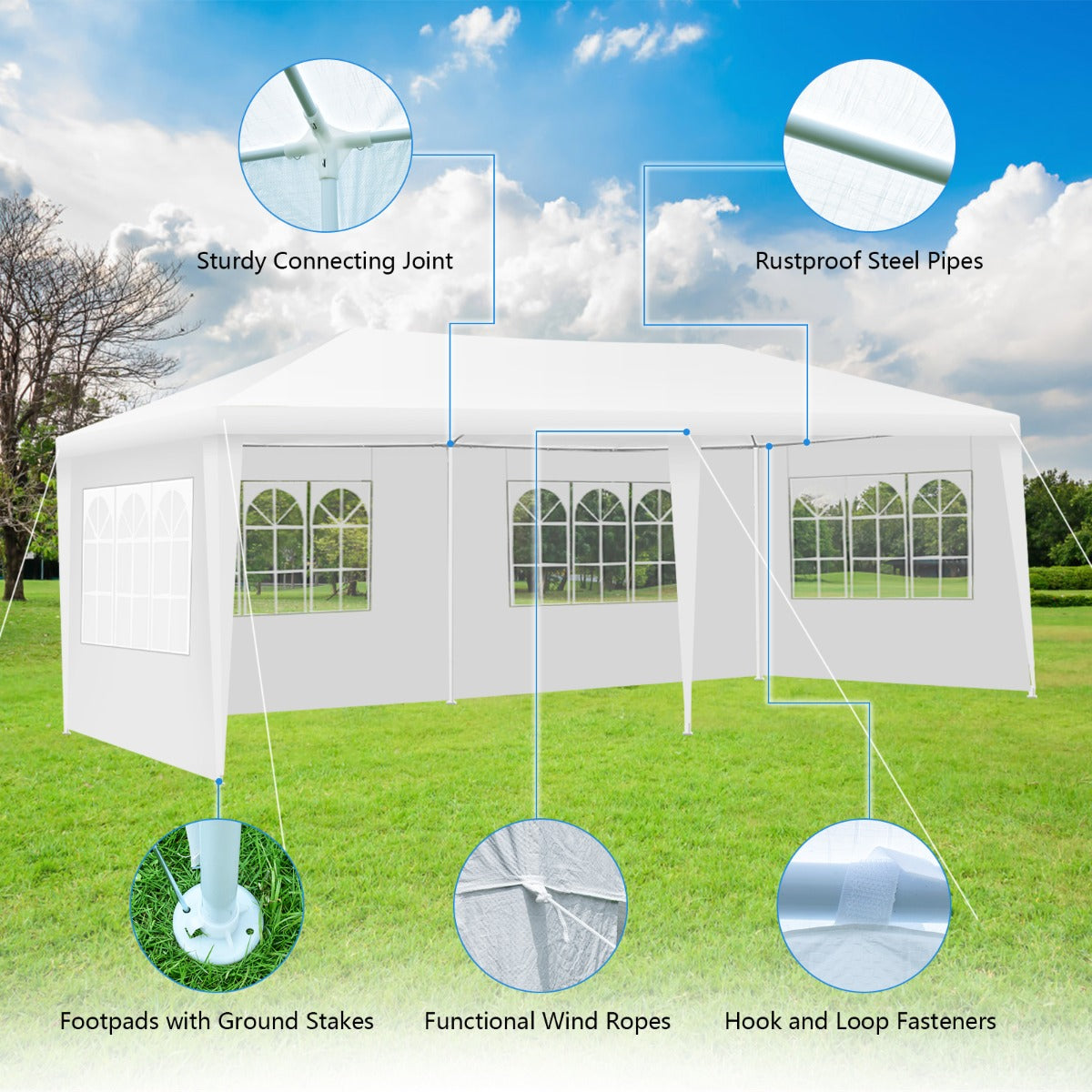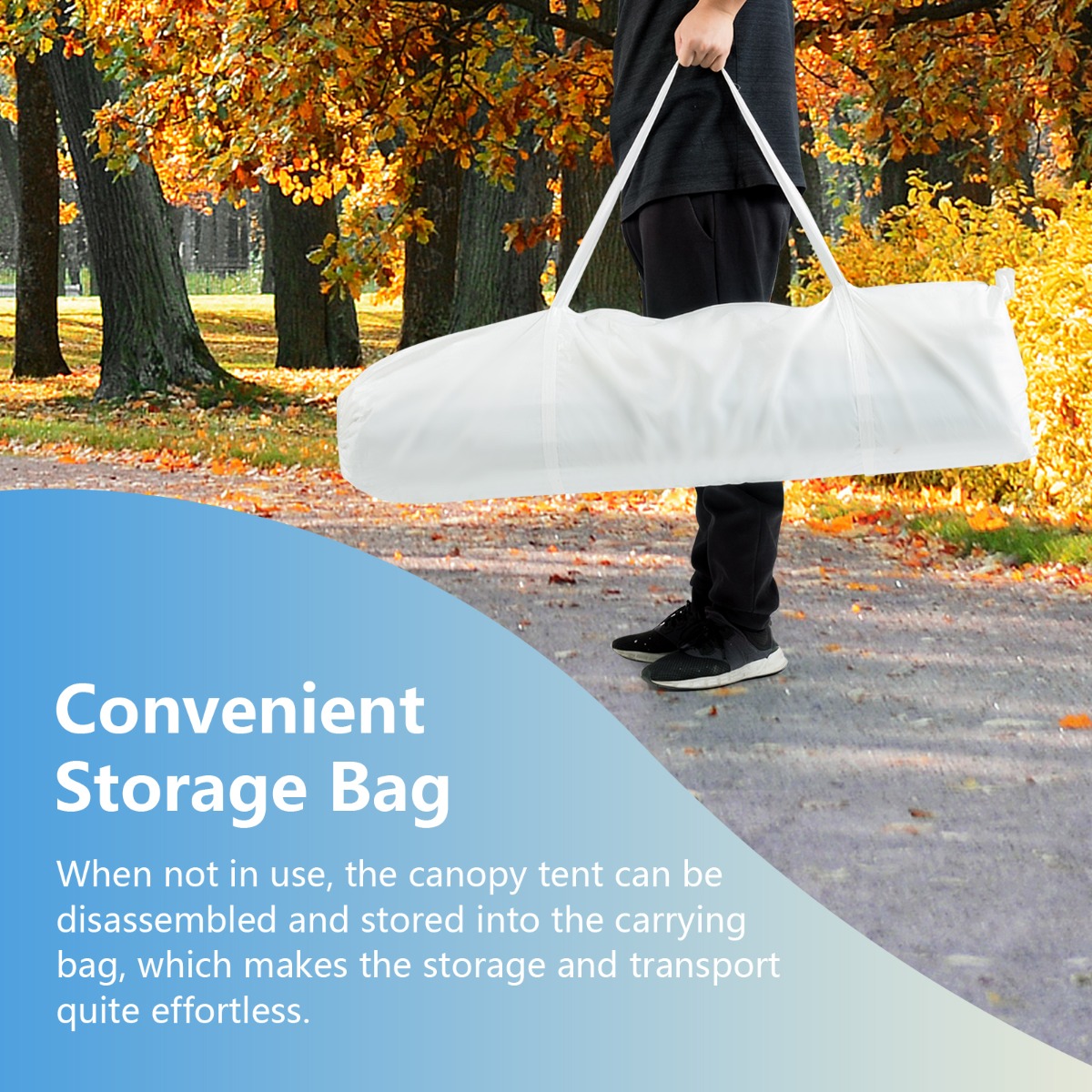 Carry Bag & Removable Sidewalls: For easy transportation and storage, we added a carrying bag with a portable handle for this party tent. 4 sidewalls with hook and loop fasteners are removable when not needed. Ropes and stakes are also included for extra stability and safety.