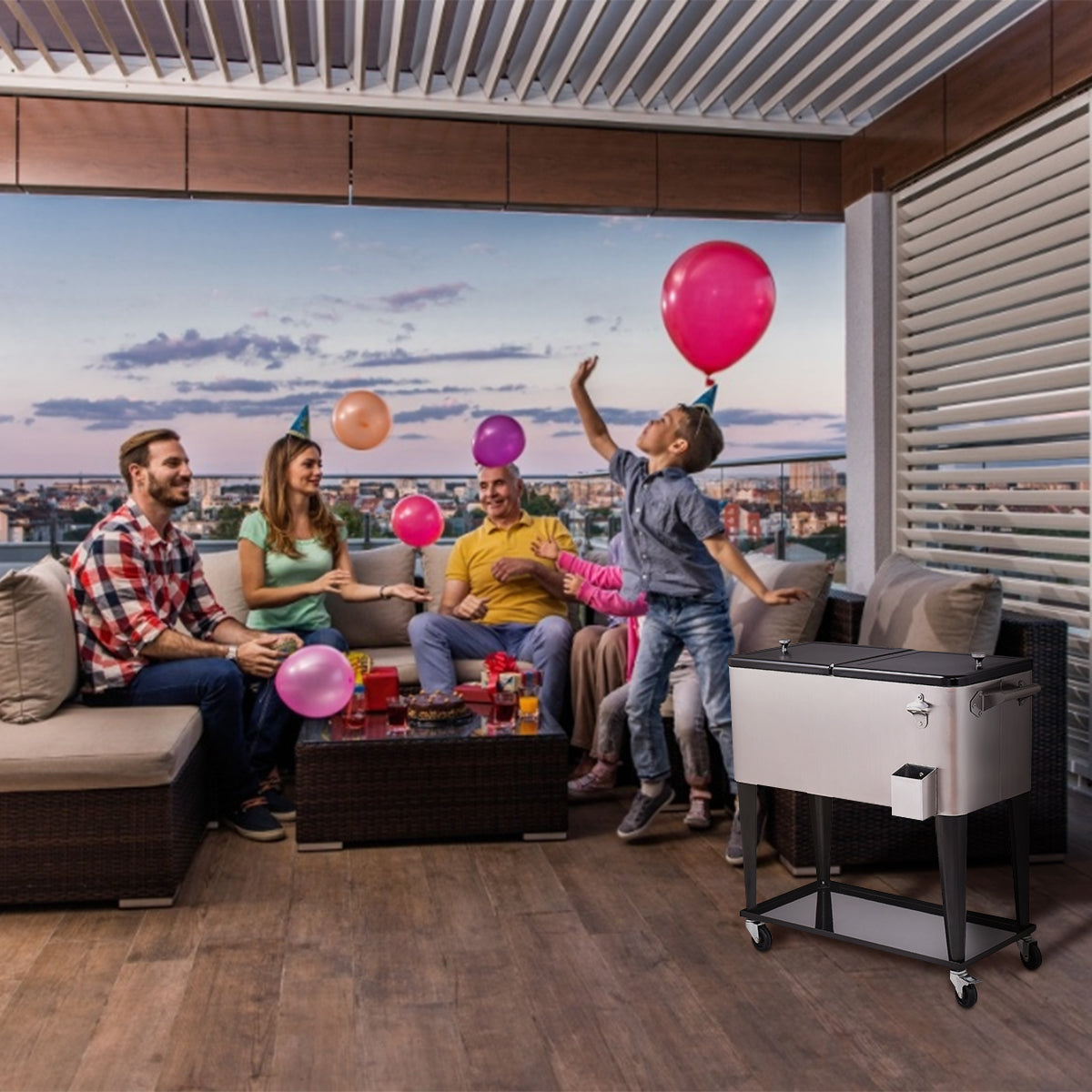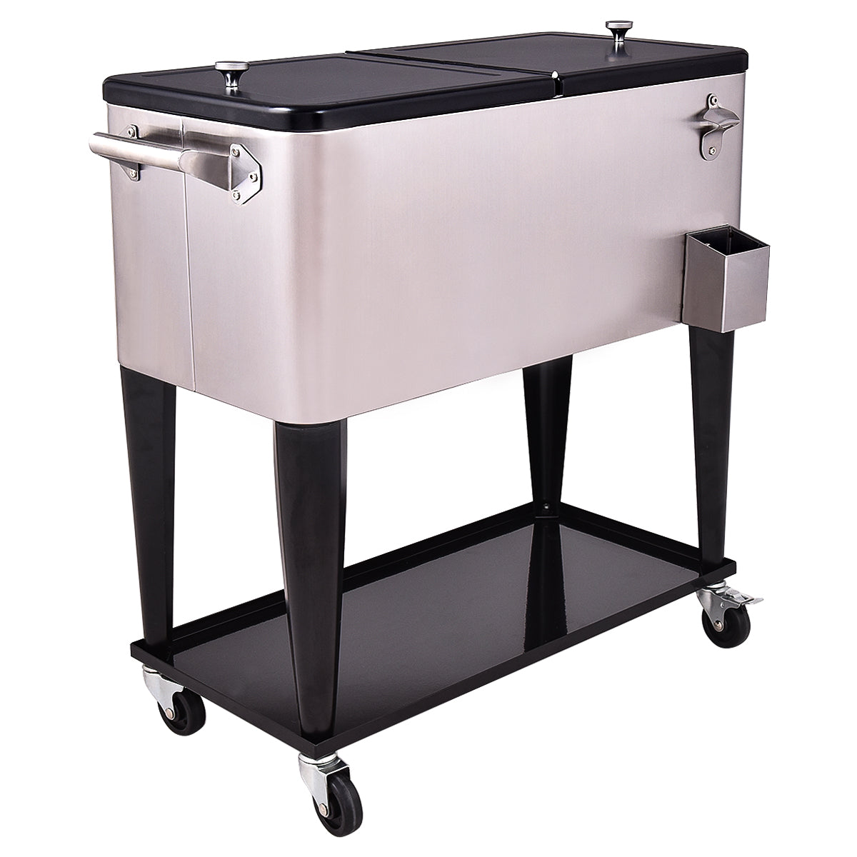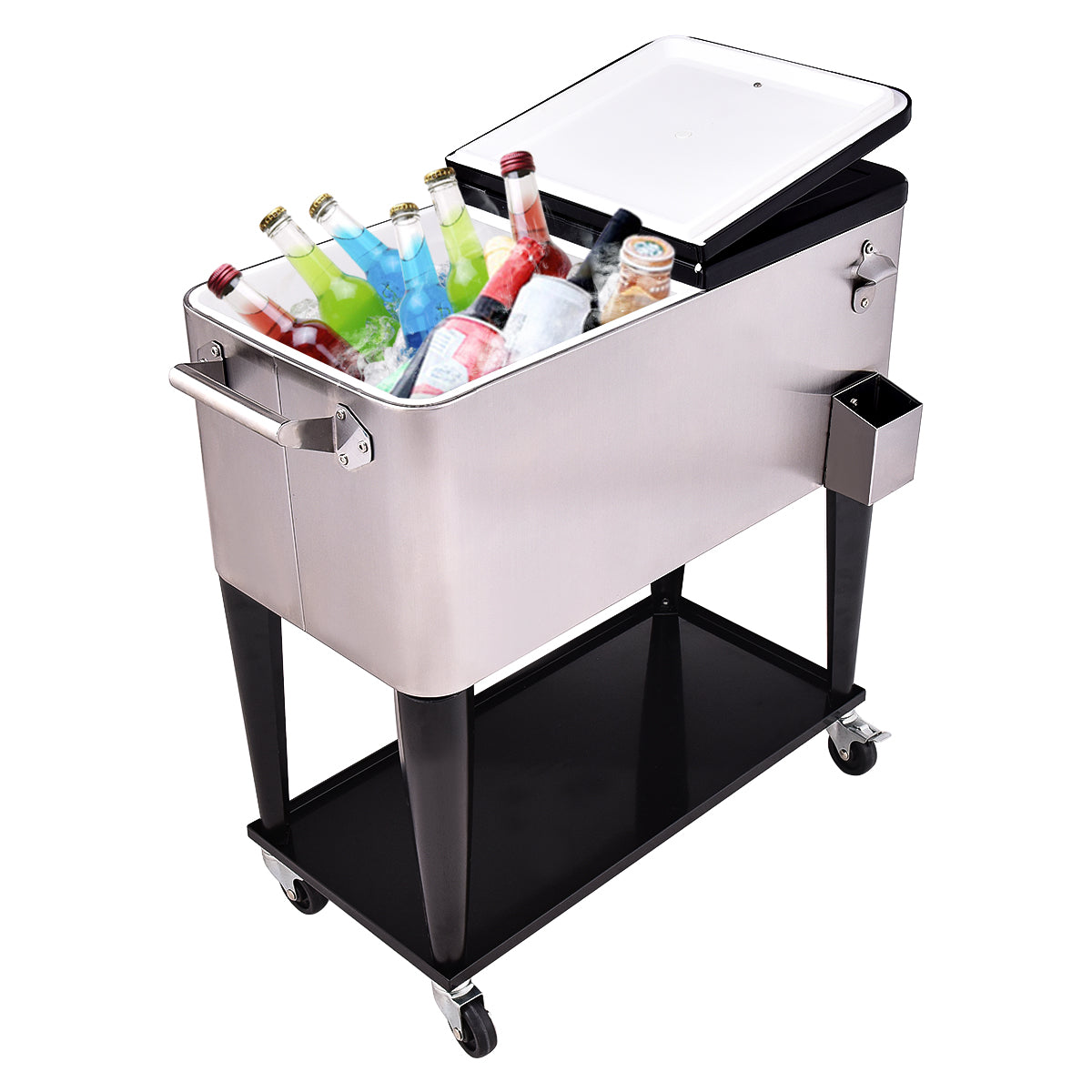 76L Cooler Cart: Our oversized 76L rolling patio cooler cart can hold up to 100 cans or 50 bottles. Whether it's beer, drink or other food, the large-capacity design can meet your outdoor needs. The bottom shelf provides additional storage space for transporting food easily.