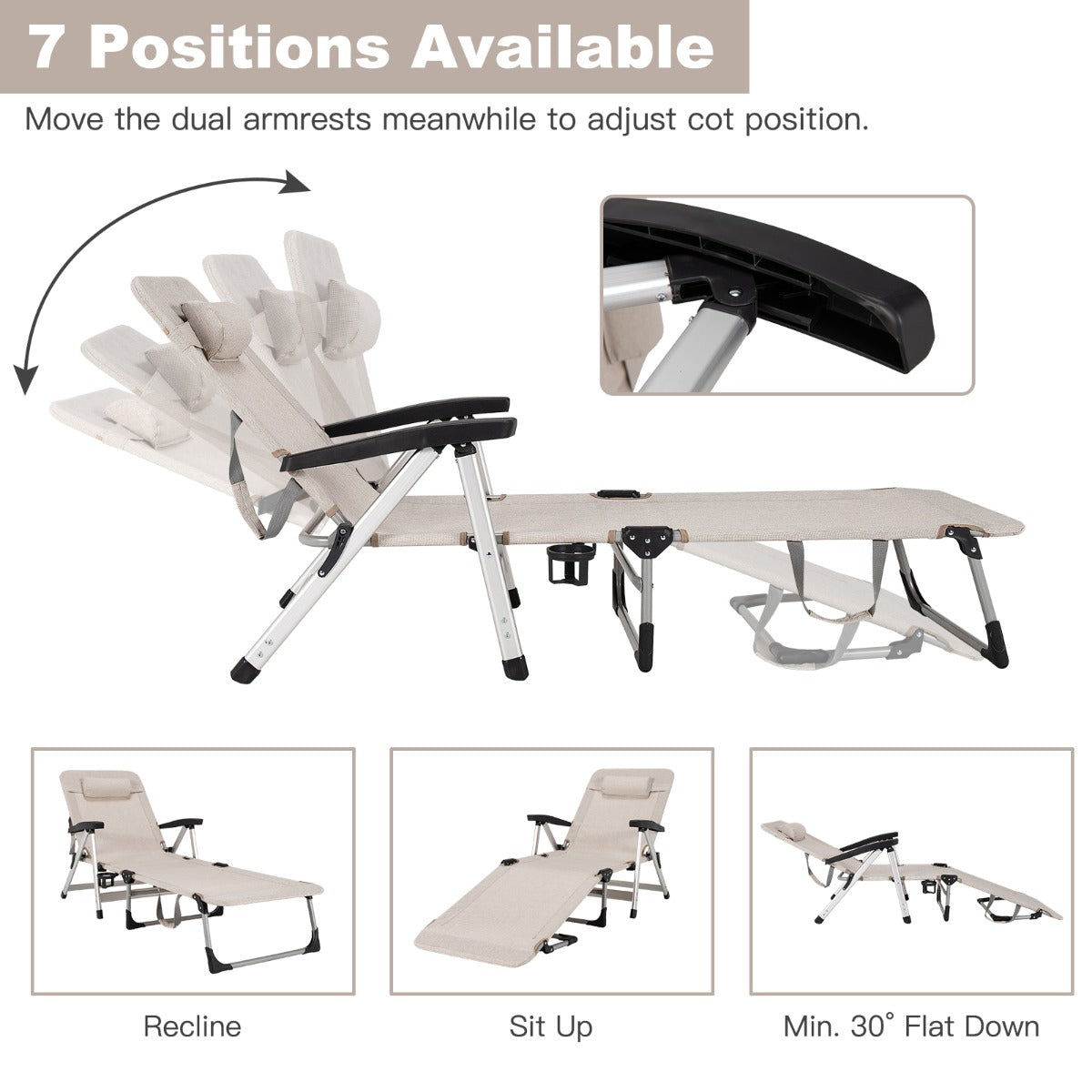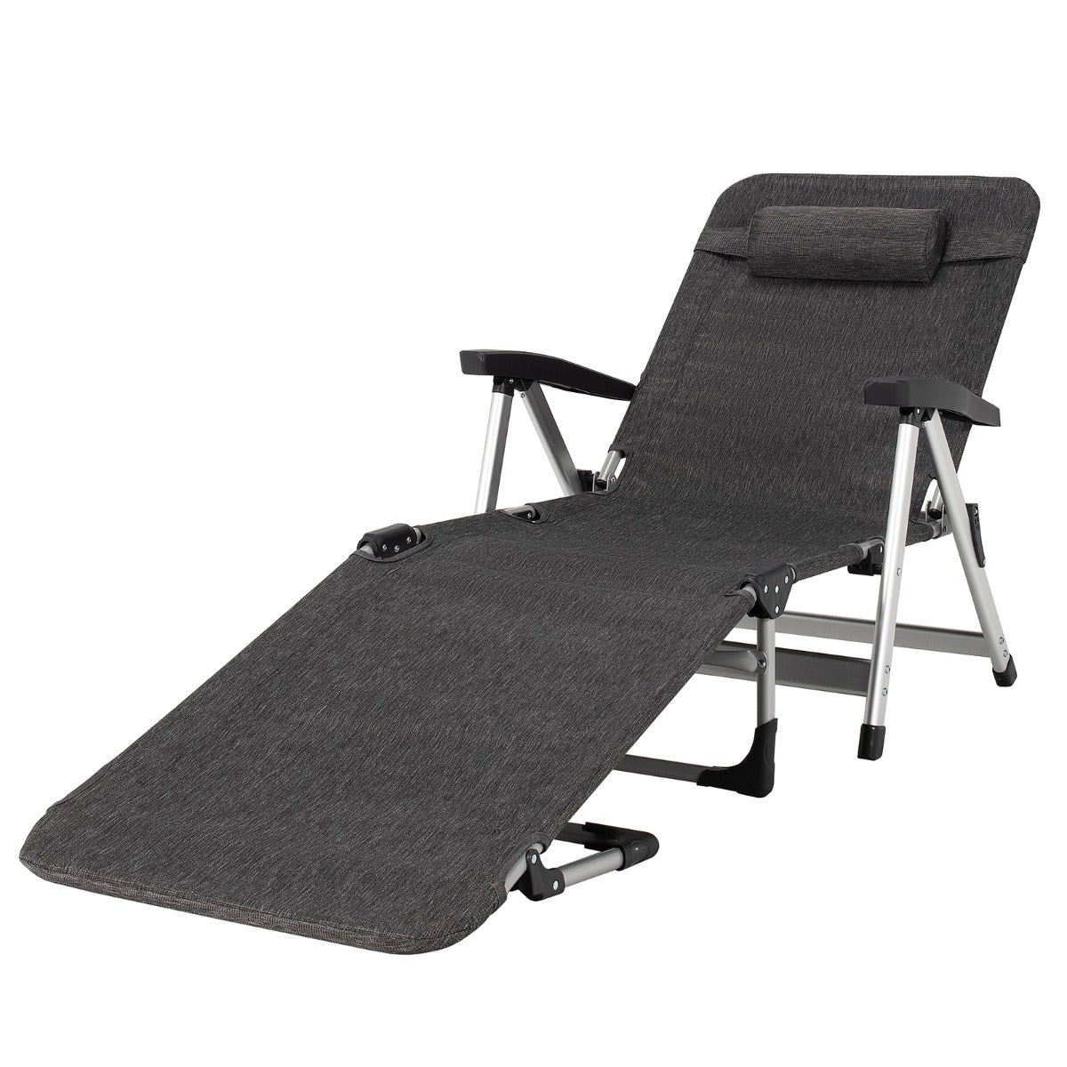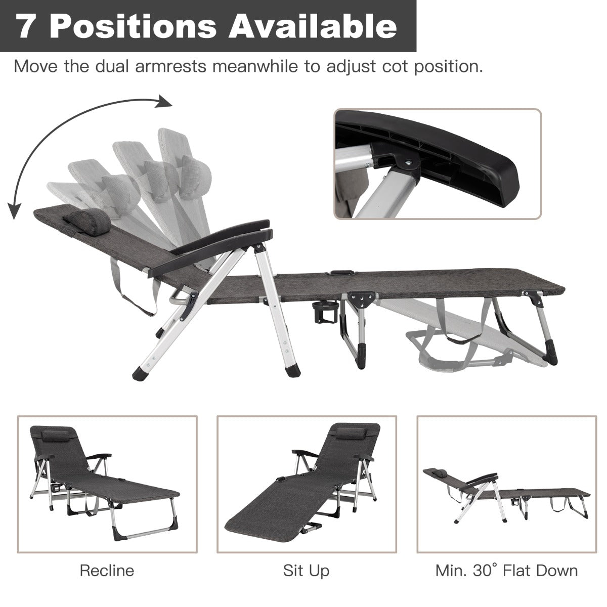 Adjustment of 7 Positions: By simply moving the armrests back and forth, you can get 7 backrest positions of the lounge chair. You also have two choices of footrest positions during using. Hence, this sleeping cot can fully satisfy your daily requirements, like reading books, playing phones, watching TV or taking a nap.