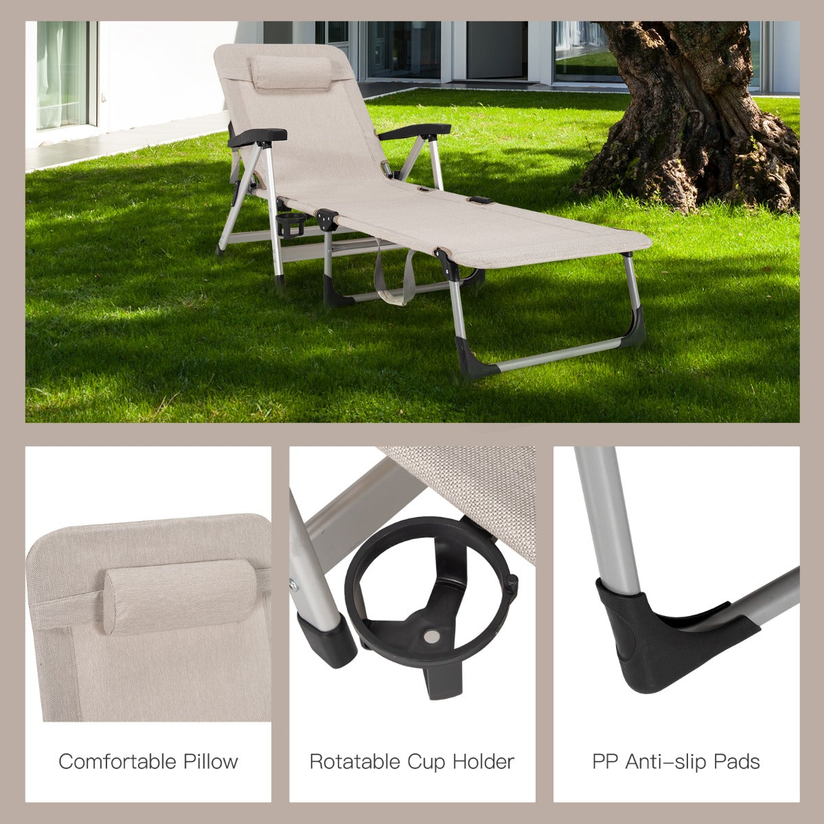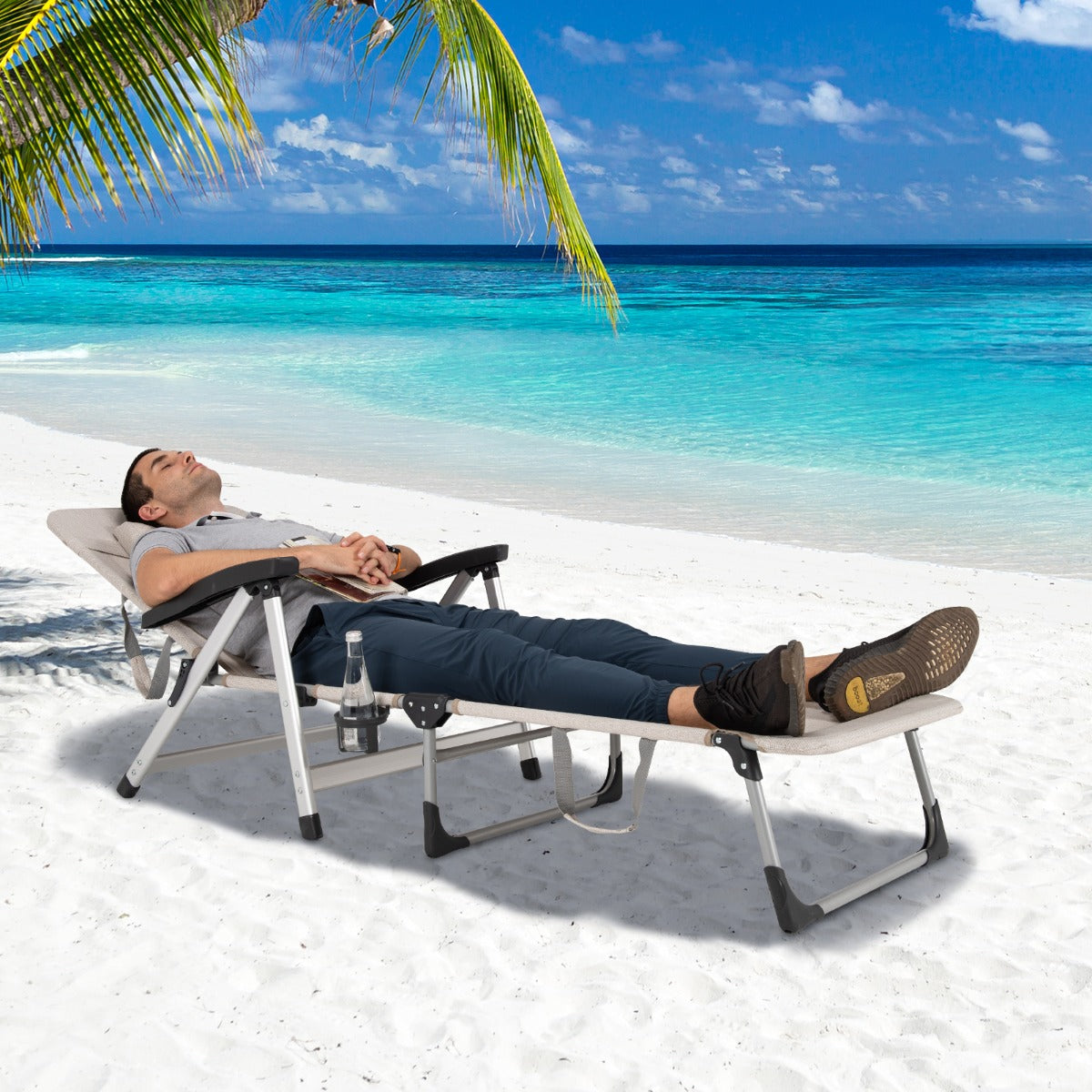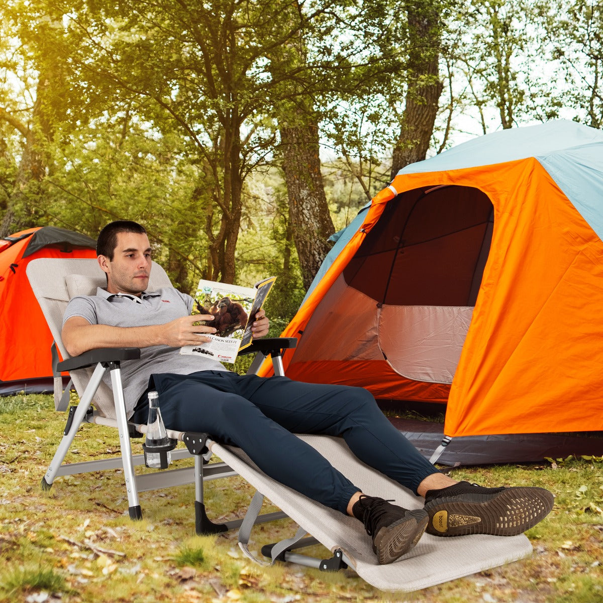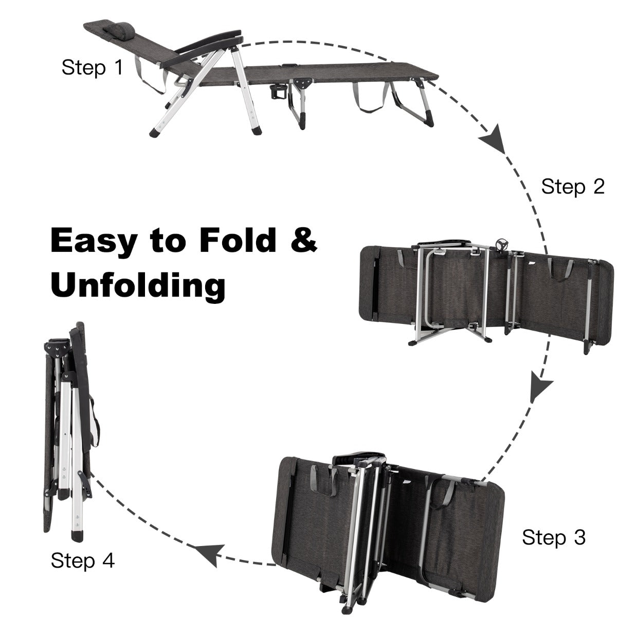 Adjustment of 7 Positions: By simply moving the armrests back and forth, you can get 7 backrest positions of the lounge chair. You also have two choices of footrest positions during using. Hence, this sleeping cot can fully satisfy your daily requirements, like reading books, playing phones, watching TV or taking a nap.