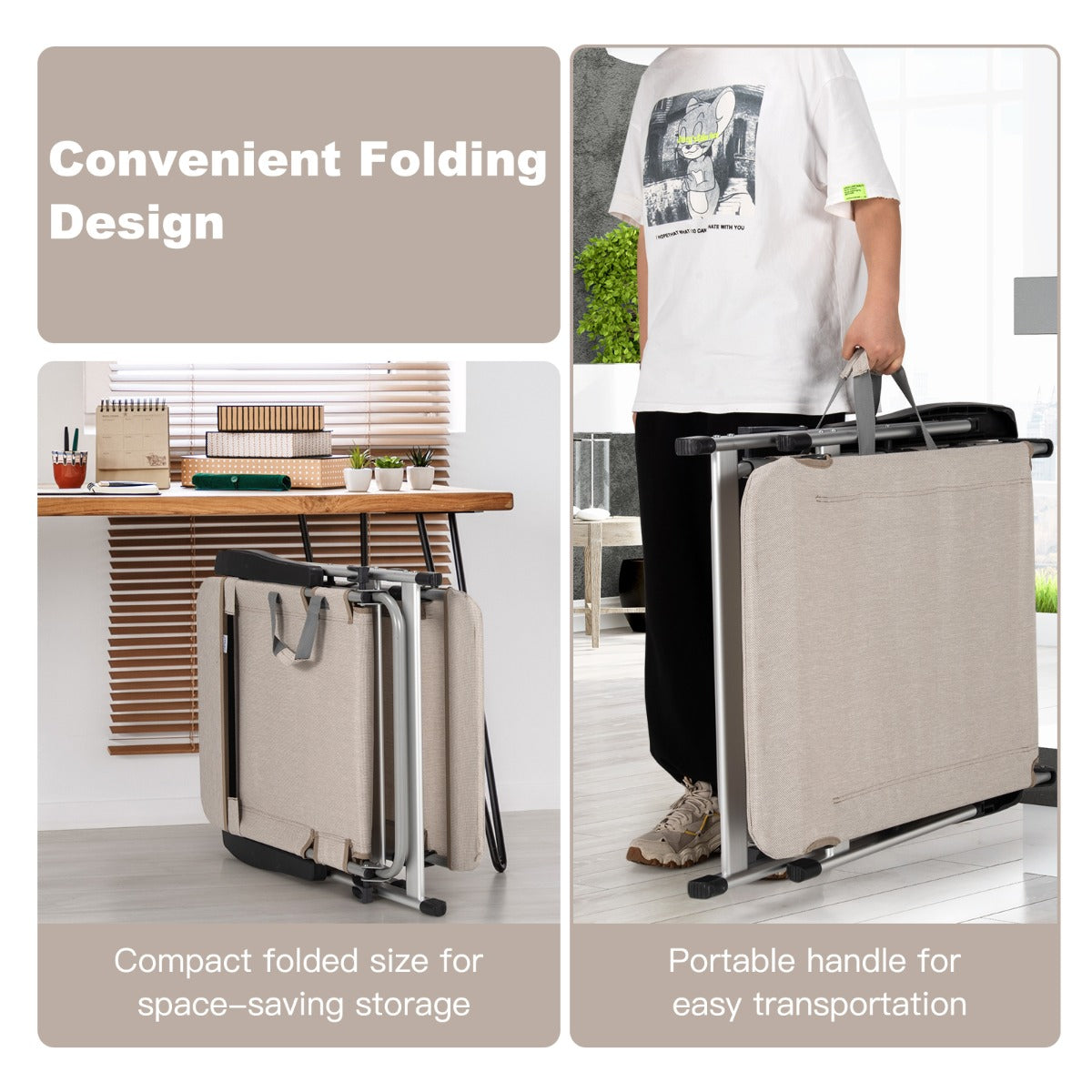 Quick Setup & Fold: This portable folding camping cot can be folded into a size of one third of its expanded size, which is small enough to be stored in narrow space. Using its side straps to carry it to anywhere, like beach, backyard, garden, poolside, etc. The unfold and fold processes are effortless and simple for everyone.