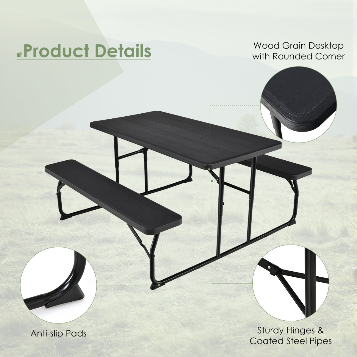 Sturdy Metal Frame & Smooth Surface: The base of the bench table set is constructed of metal frame is with rust-resistant finish. And the iron pipe is thick enough to ensure sturdiness and stability. Besides, the tabletop is made of waterproof HDPE. The smooth surface makes it easy for cleaning.