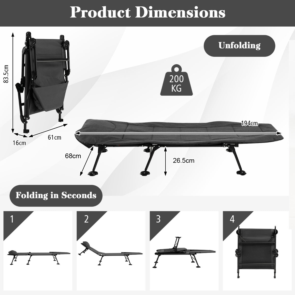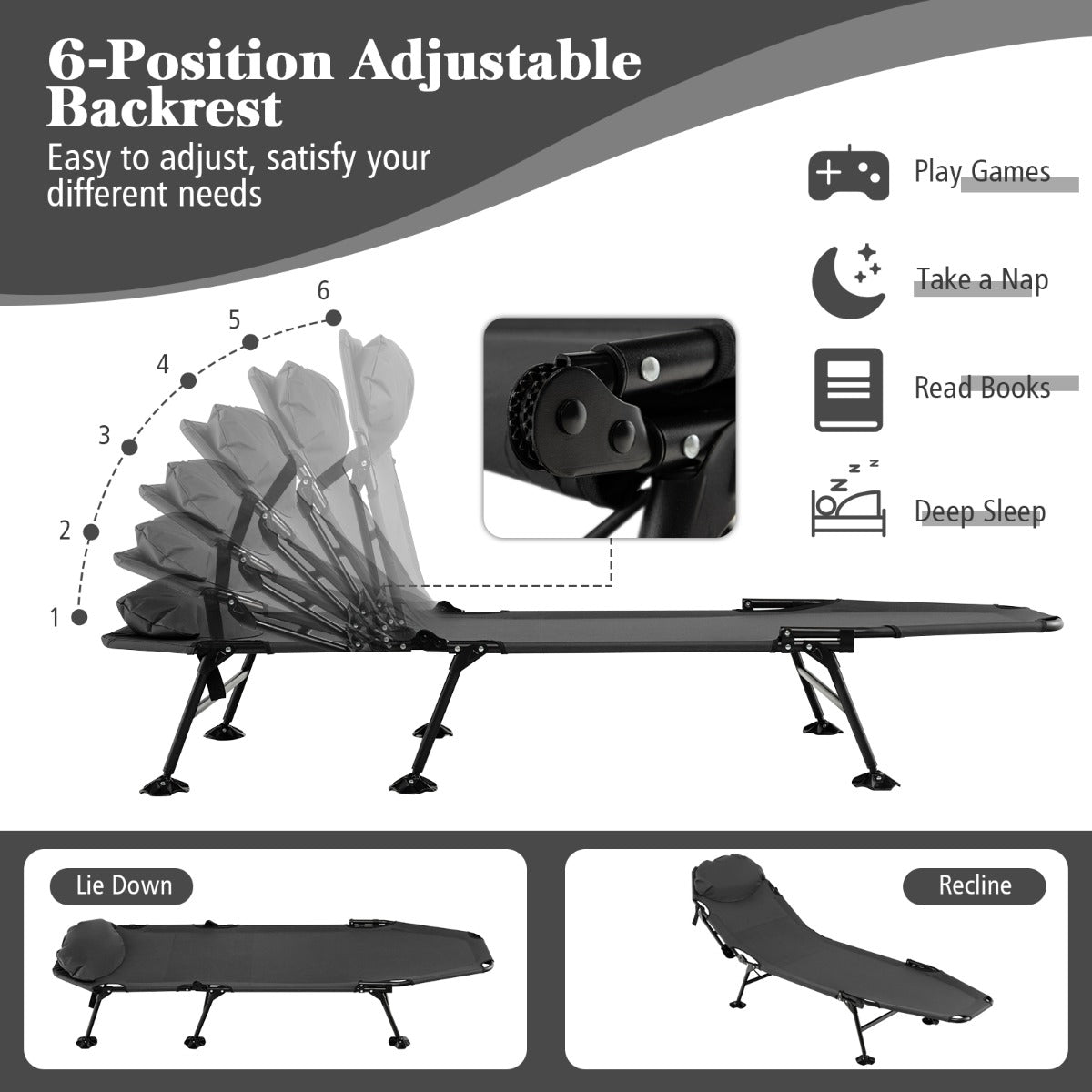Aussies Market Folding Camping Cot with Detachable Mattress and 6-Position Adjustable Backrest for Camp/Office