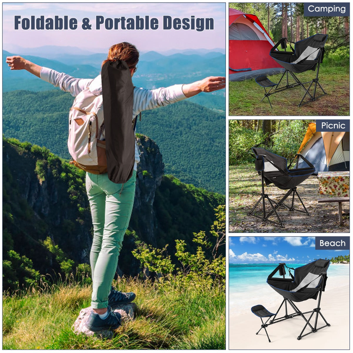 Detachable & Retractable Footrest: This hammock camping chair comes with a footrest that provides a perfect place to relax your feet. The distance between the footrest and the chair can be adjusted from 64 to 101 cm. And the footrest can be also detached as you want.