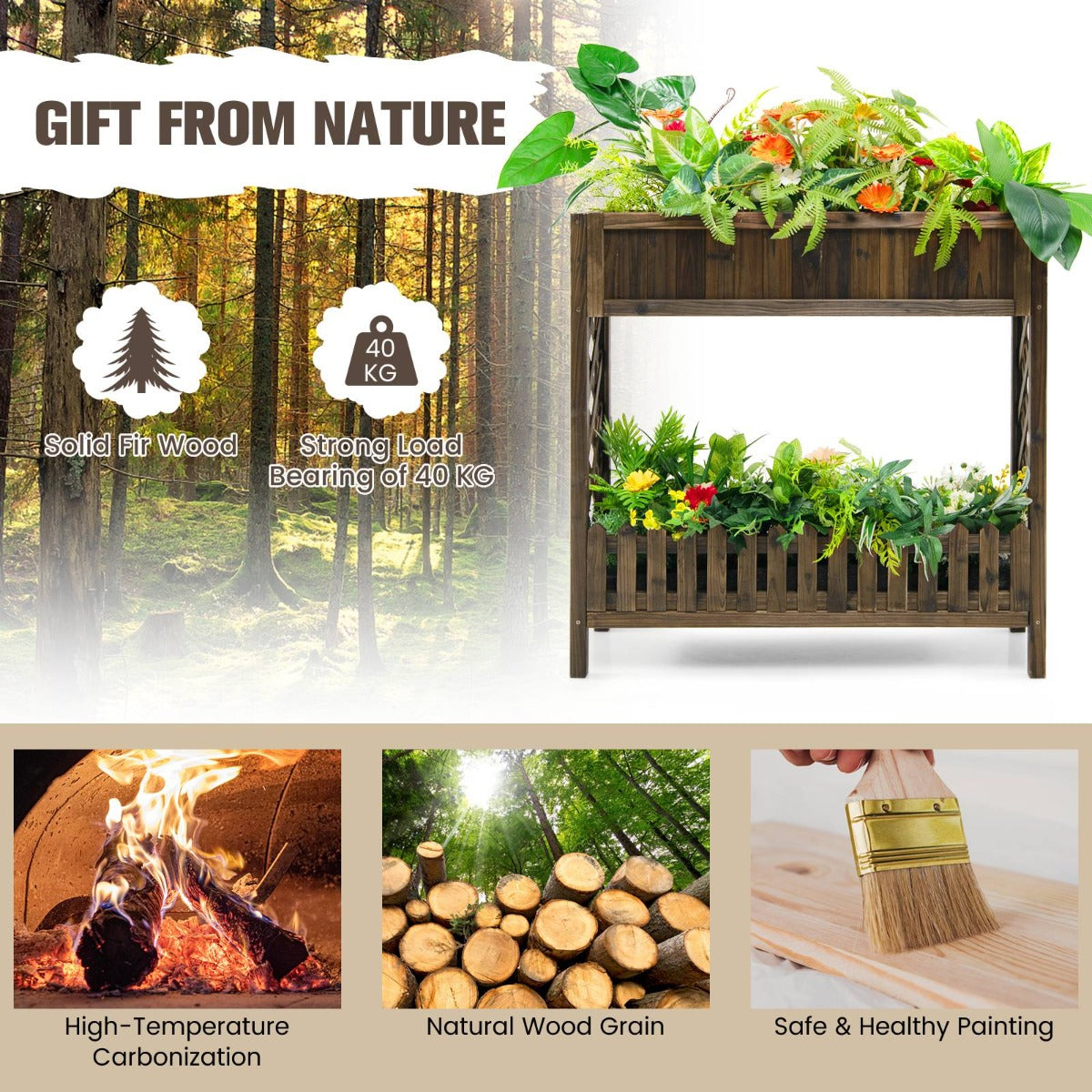 Well-Selected Material & Carbonized Treatment: The wooden raised garden bed is crafted with solid fir wood that is high-hardness and moisture-resistant, ensuring a long service life. Moreover, through the high-temperature carbonization treatment, the planter box showcases a uniform surface and excellent deformation resistance.