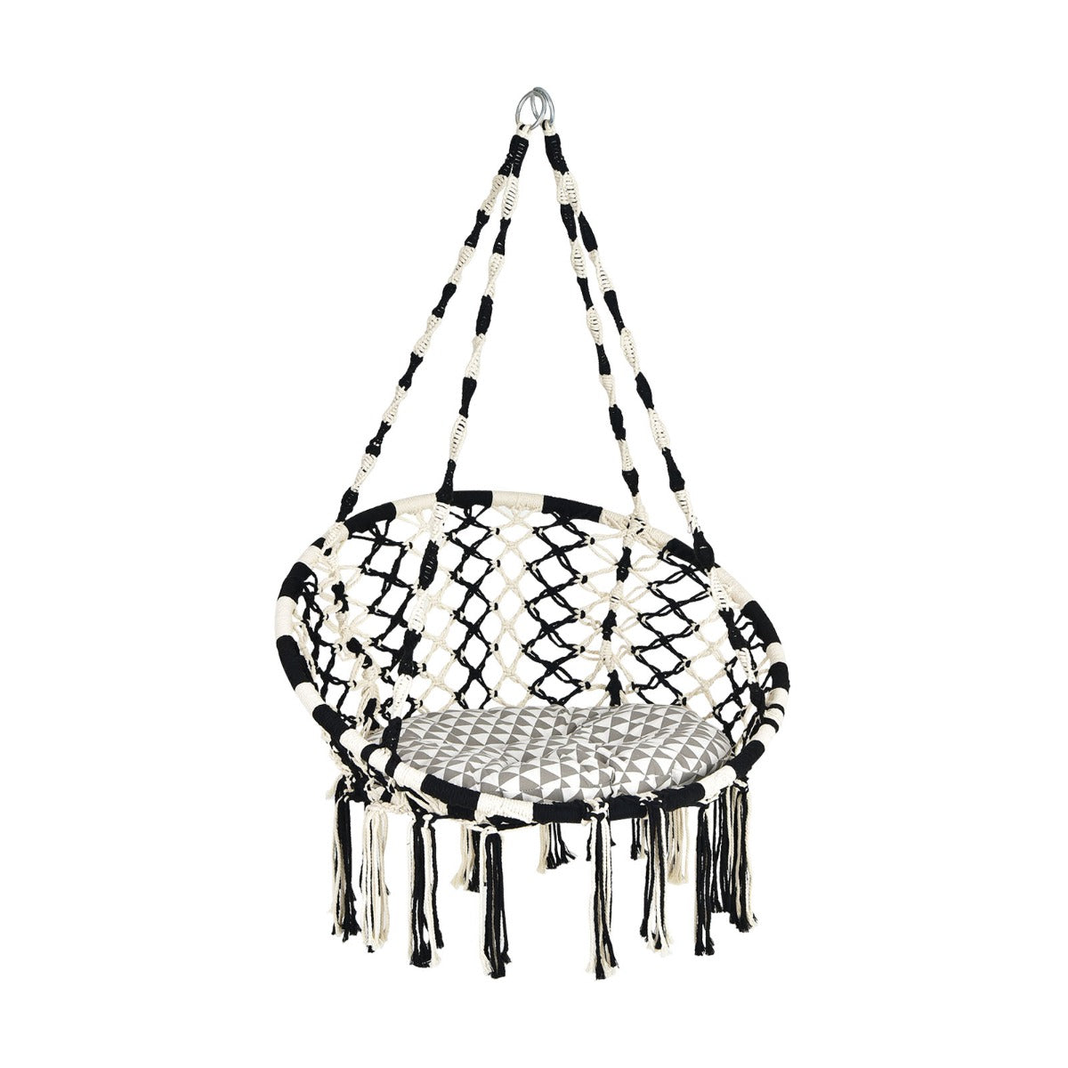 Ultra Soft Cushion: Our hammock swing comes with a round cushion that is padded with thickened cotton, which offers you super comfortable sitting experience. What's more, the cover with a smooth zipper design is convenient for detaching and cleaning.