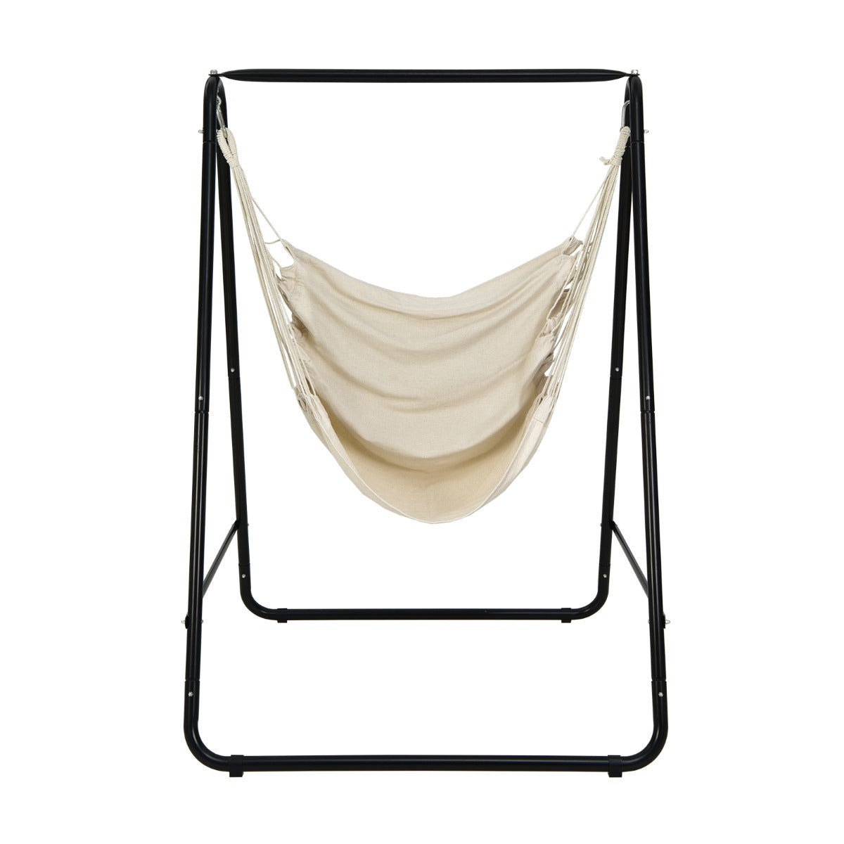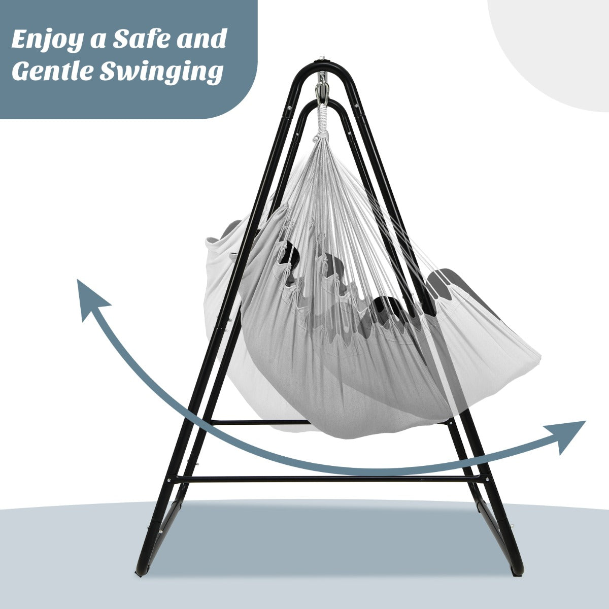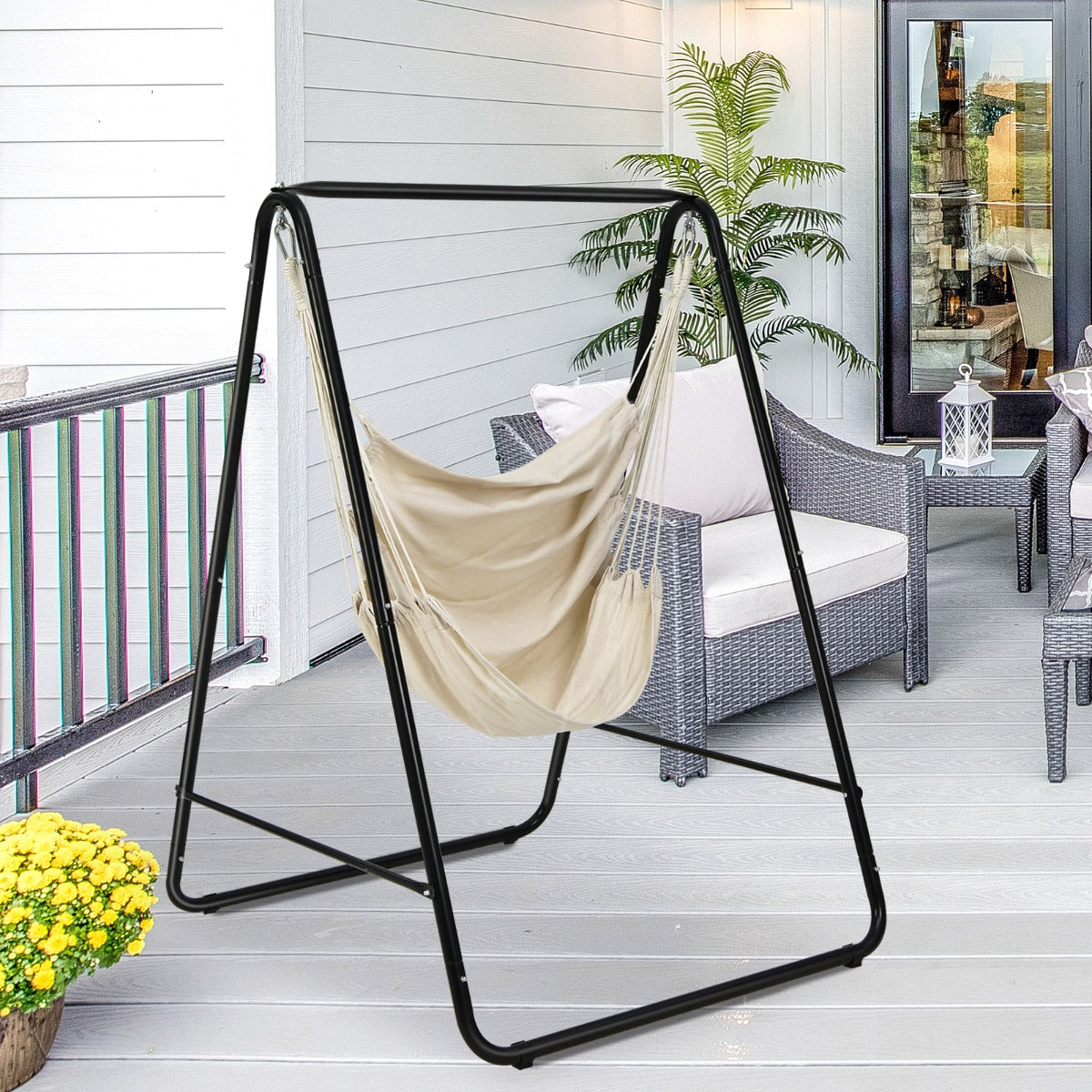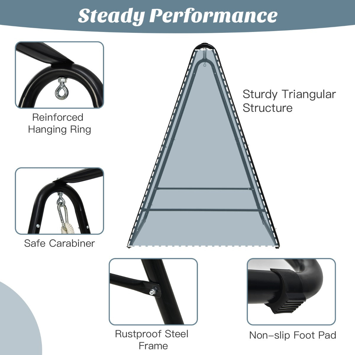 Stable Triangular Structure: The hammock chair stand with thickened and rustproof steel frame offers long-lasting use without cracks or deformation. Besides, the stable U-shaped base with non-slip foot pads increases overall stability. The reinforced hanging ring and carabiners ensure your safety during use.