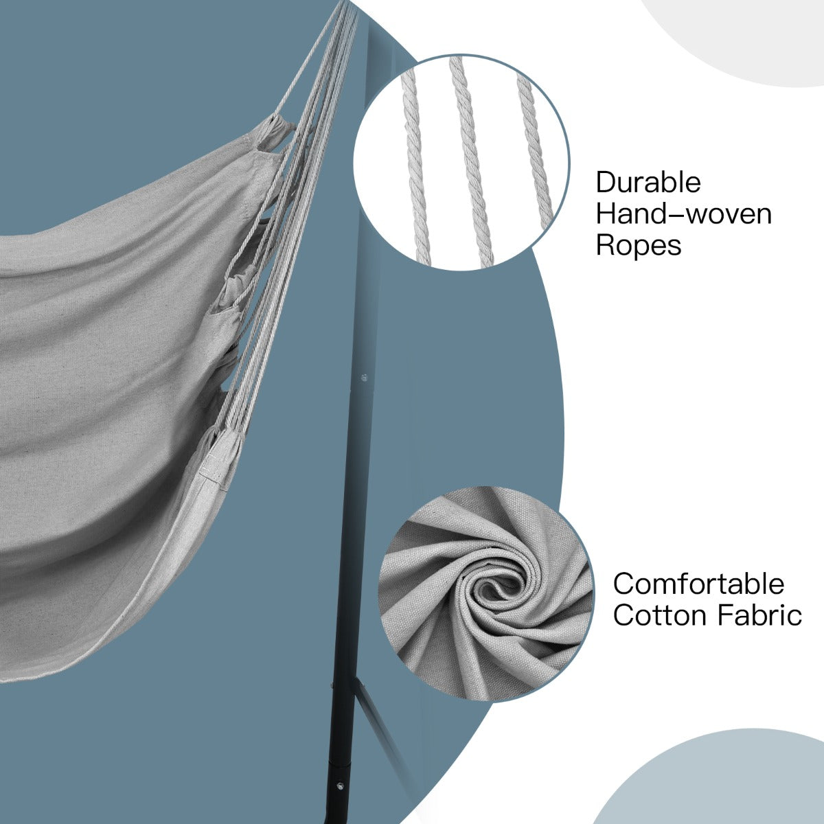 Comfortable Hammock Chair: Made of skin-friendly fabric and durable poly-cotton ropes, our hammock chair swing provides you with a breathable and stable sitting experience. In addition, the large seat makes you relaxed when you sit on it.
