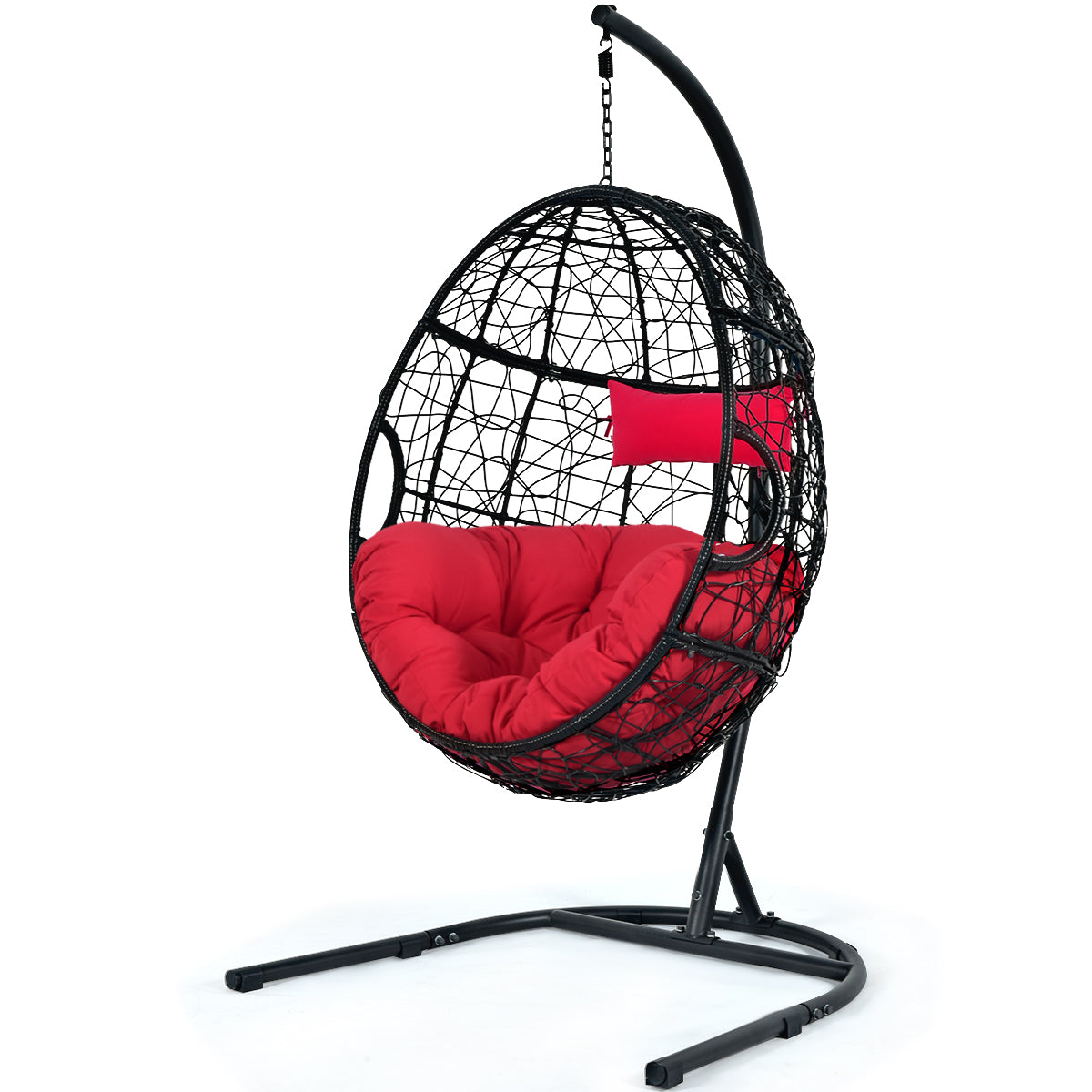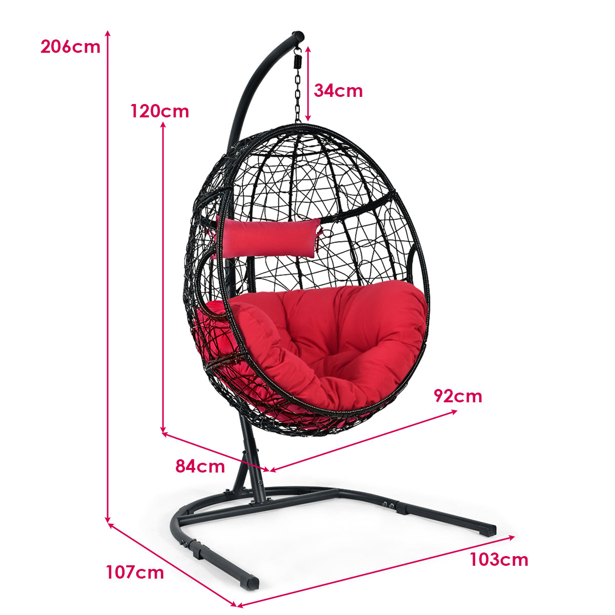 High-quality & Sturdy Egg Chair: This hanging egg chair is constructed of heavy-duty iron tubes in black powder-coated finish, which provides a strong bearing capacity and durability. Non-slip pads at the bottom enhance stability. And the durable wickers wrapping around the frame can greatly protect the frame from wearing.