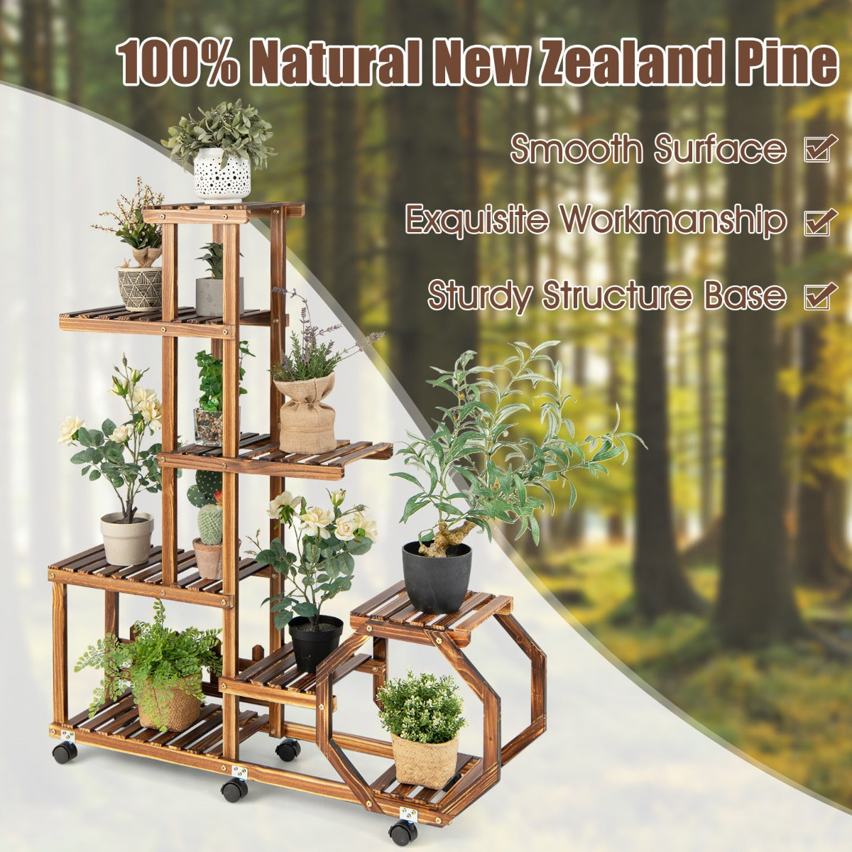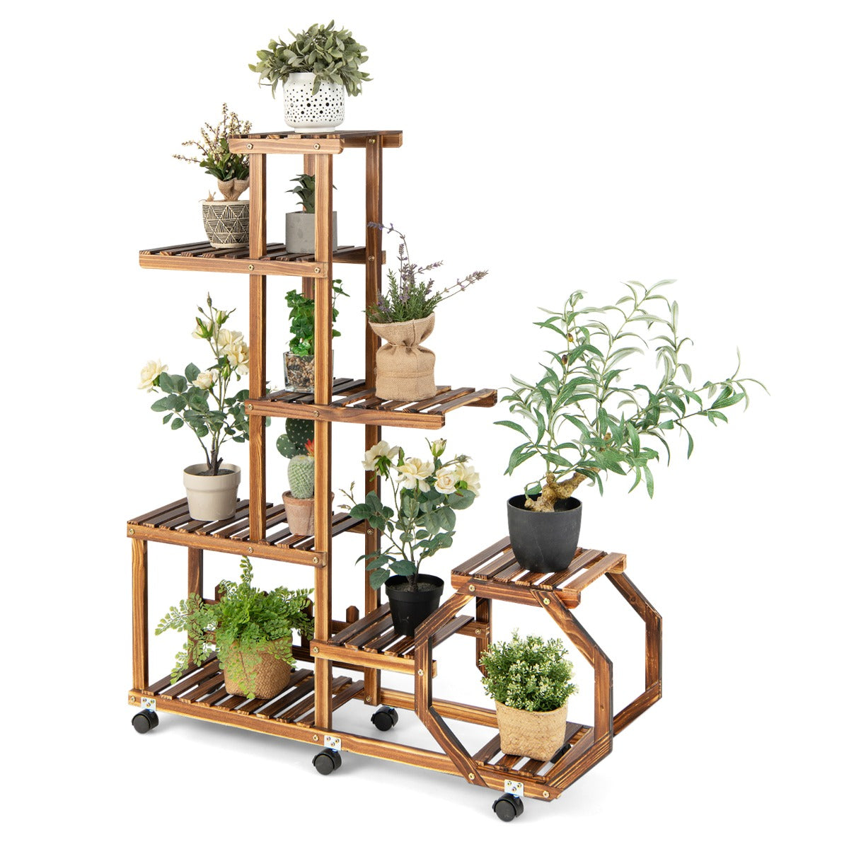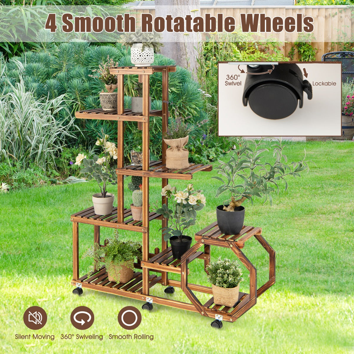 Aussies Market Multi-Layer Wooden Plant Stand with 360° Swivel & Lockable & Detachable Wheels
