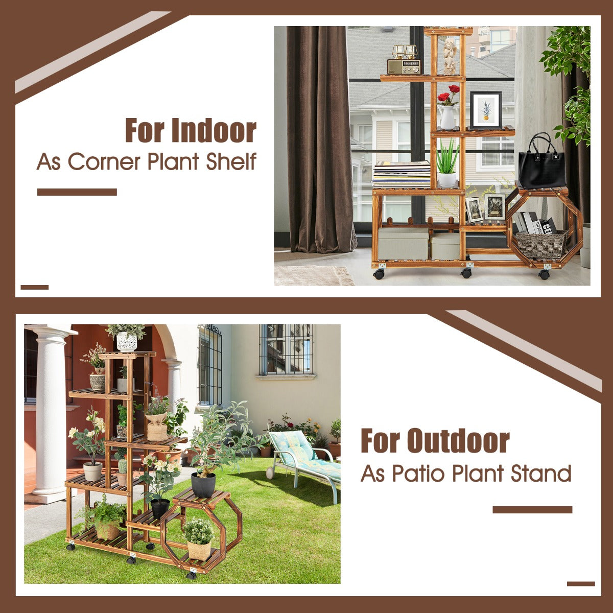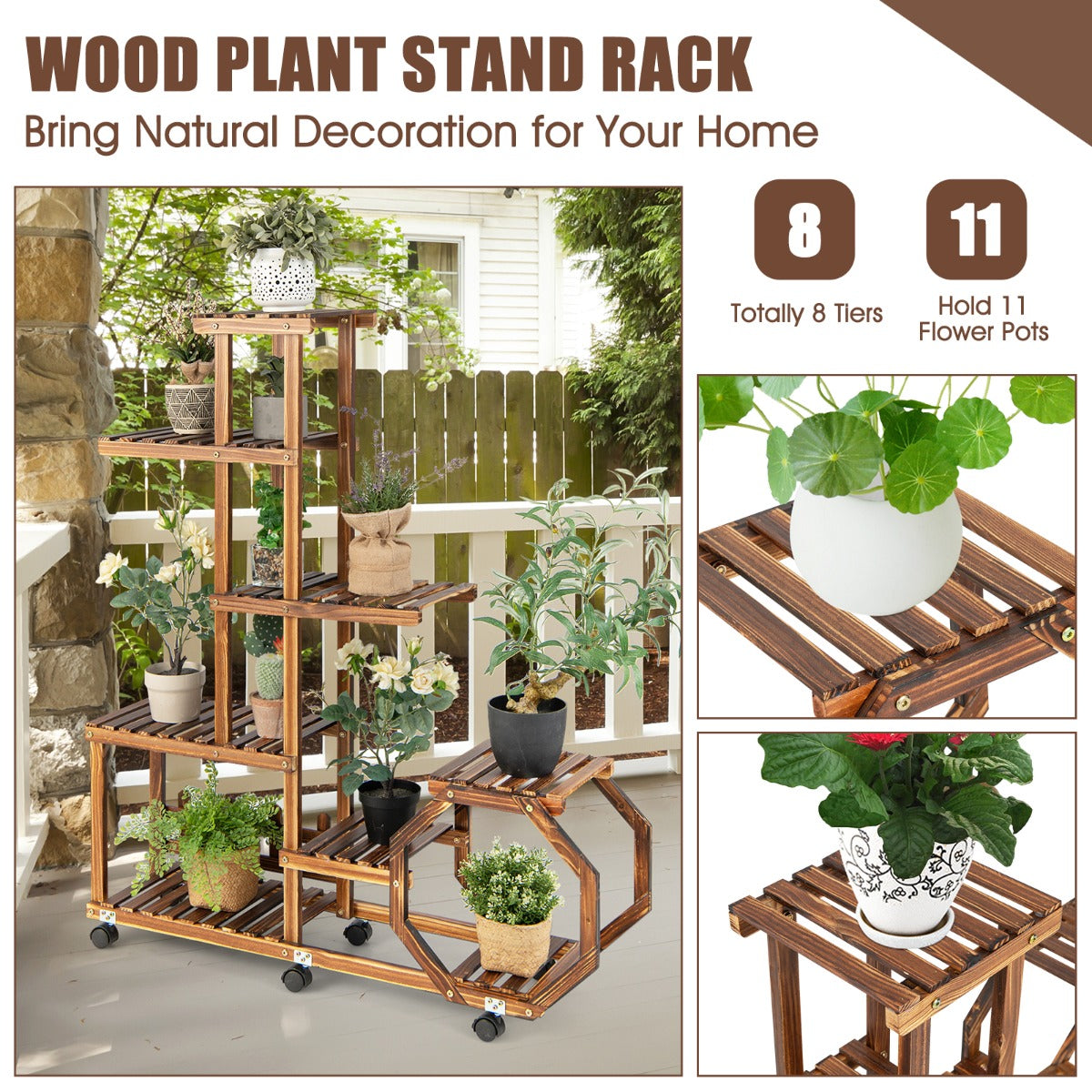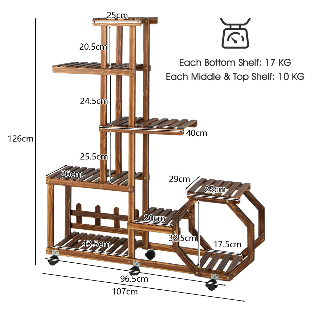 Aussies Market Multi-Layer Wooden Plant Stand with 360° Swivel & Lockable & Detachable Wheels