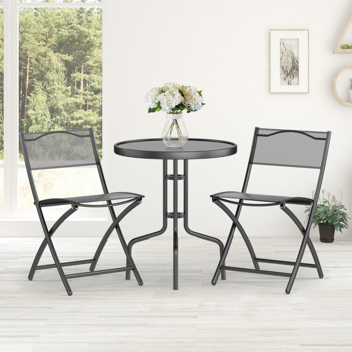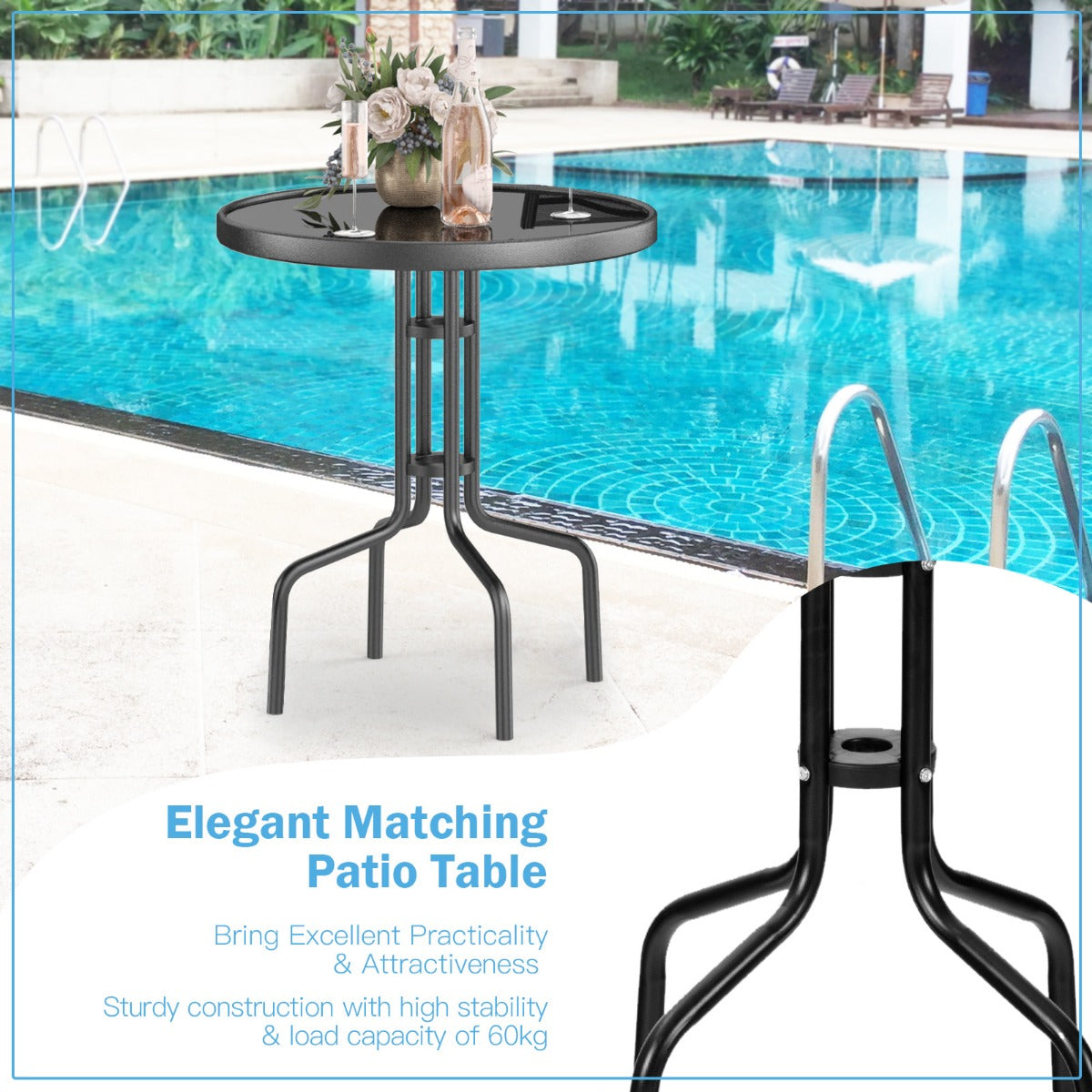 Aussies Market Outdoor Bistro Table Set with Round Black Tempered Glass Tabletop