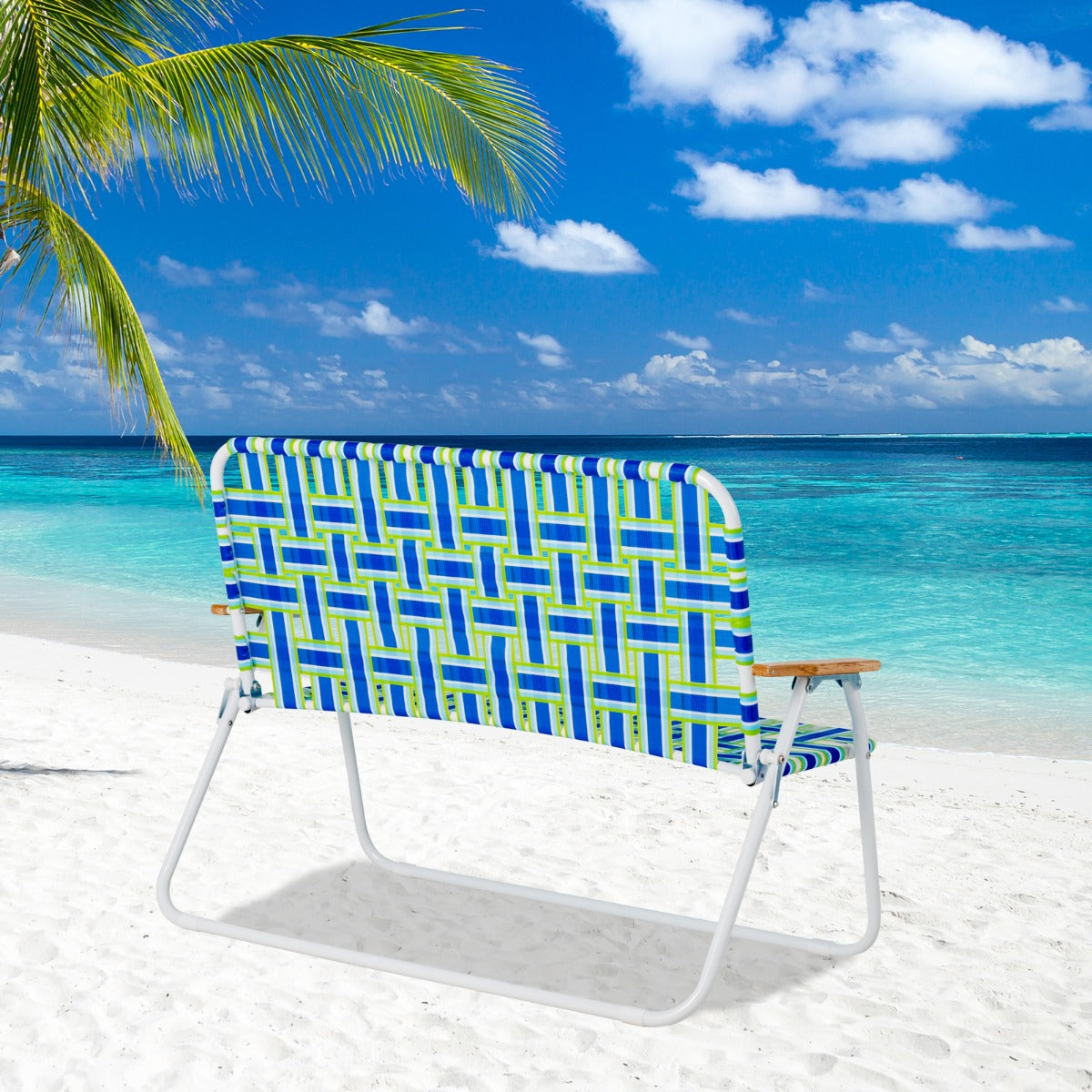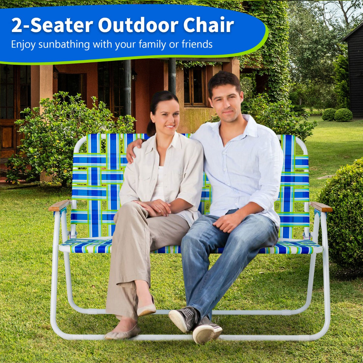 Multi-purpose Double Chair: Whether it's for the lawn or the beach, this foldable webbing chair is a great choice! The waterproof material makes it a perfect fit for many scenes such as backyards, poolside, patios, and more. Bring our double chairs and have a great outdoor time with your family or friends.