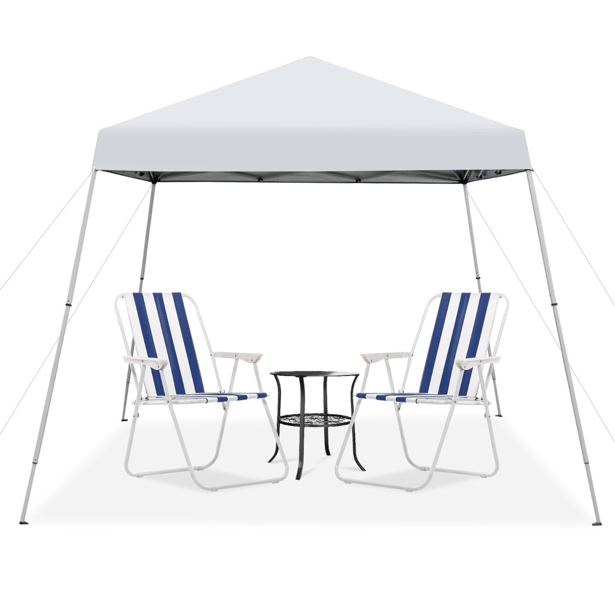 Portable & Compact Design: The slanted leg canopy can be easily folded into a compact size and stored in the carrying bag, which fits into most car trunks for easy transportation. And there exist straps for convenient carrying. Besides, it features thoughtful installation guidance on the carrying bag.