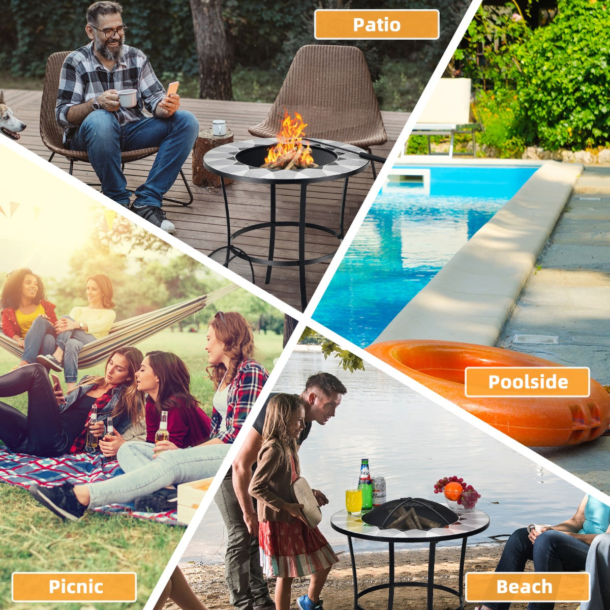 Multifunctional Fire Pit Table: This versatile fire pit table can be used as an outdoor fire pit for camping, barbecues, campfire parties and more. When summer comes, you can use it to pack ice next to the pool and chill your drinks. In short, you will never regret owning such a fire pit.