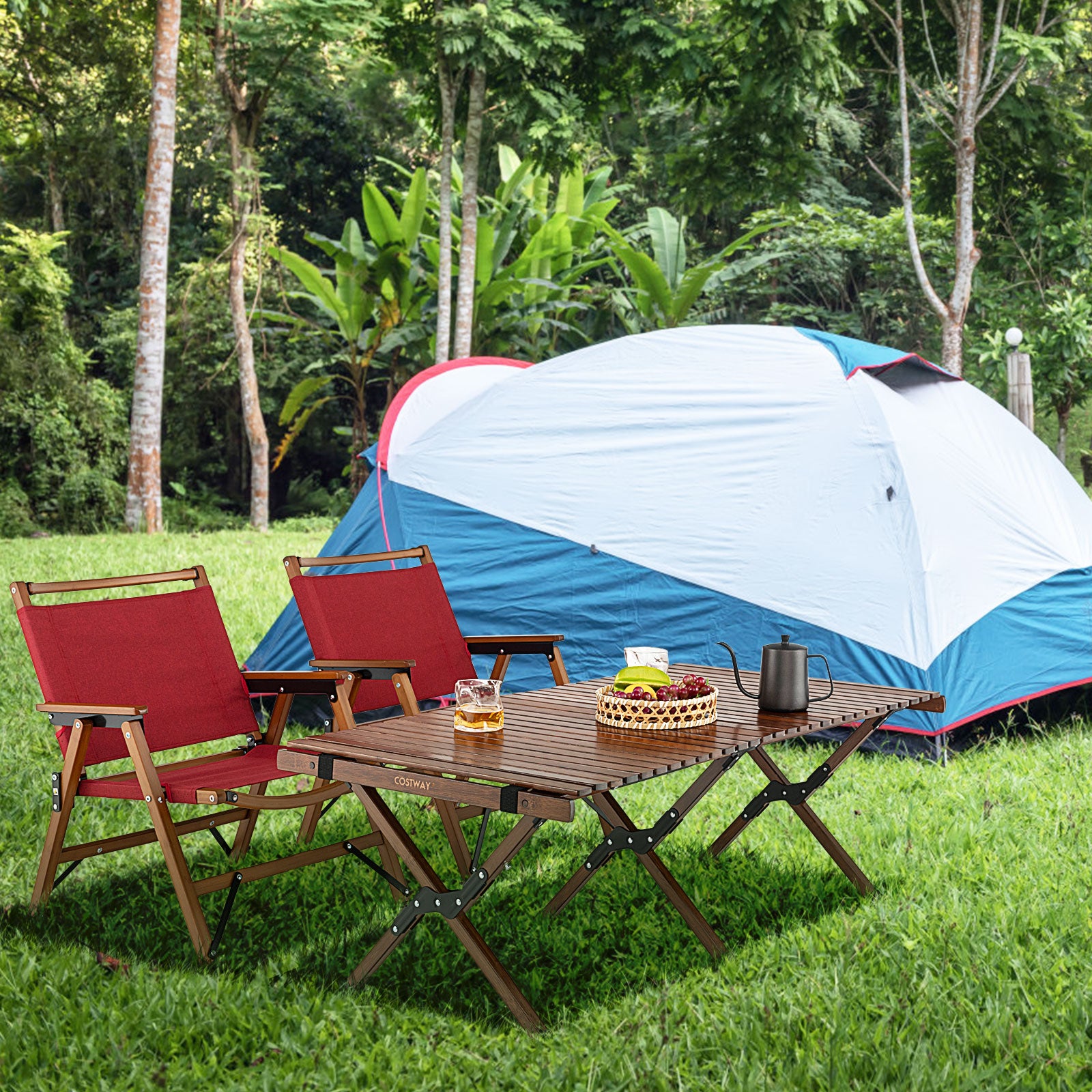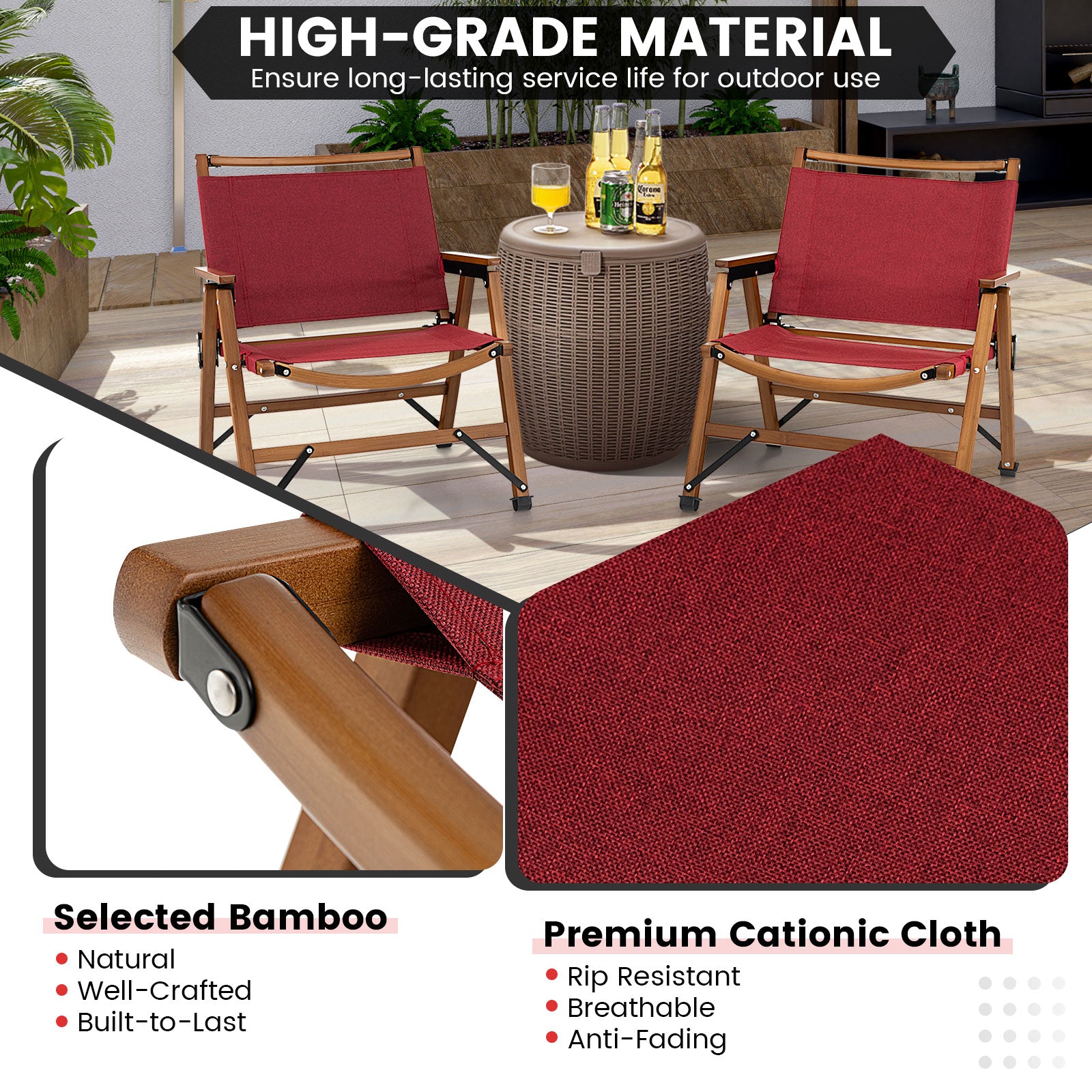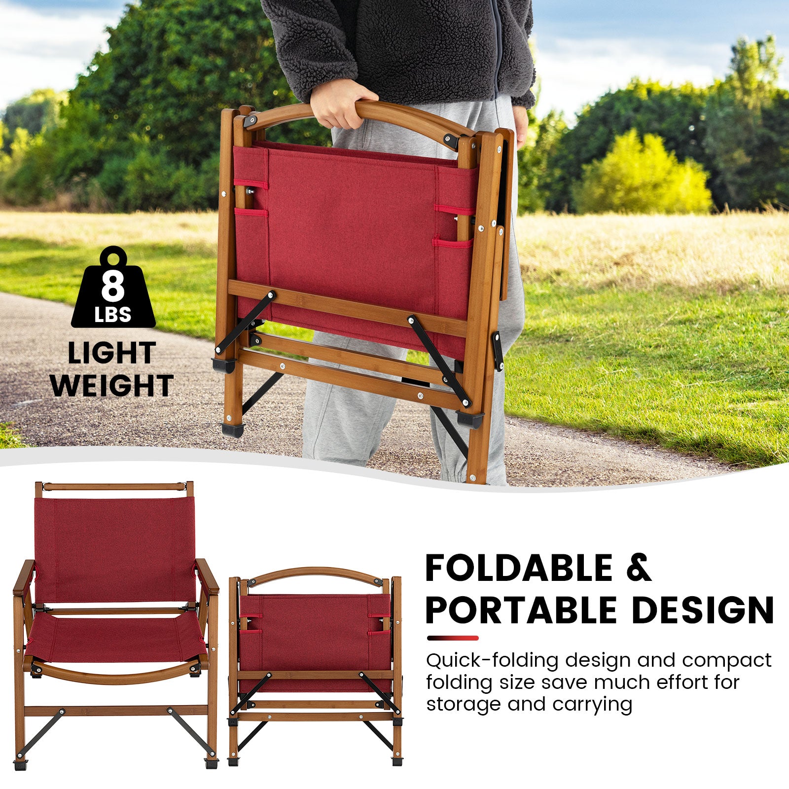 Durable Bamboo Material: Made of sustainable bamboo frame, the camping chair brings a natural feel and is sturdy enough to be used outdoors for a long time. Besides, the reinforced metal connection and non-slip foot pads add extra stability to hold up to 150kg.