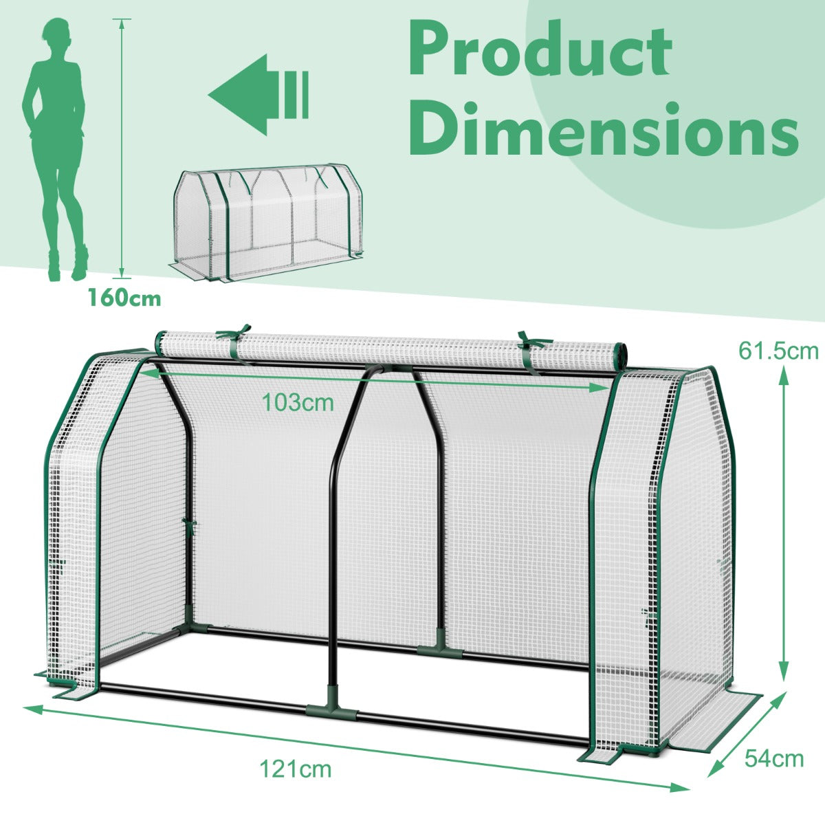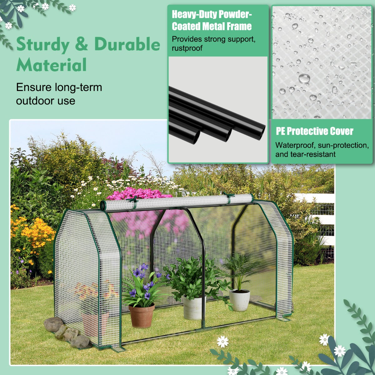 Aussies Market Portable Greenhouse with Roll-Up Zippered Door for Garden