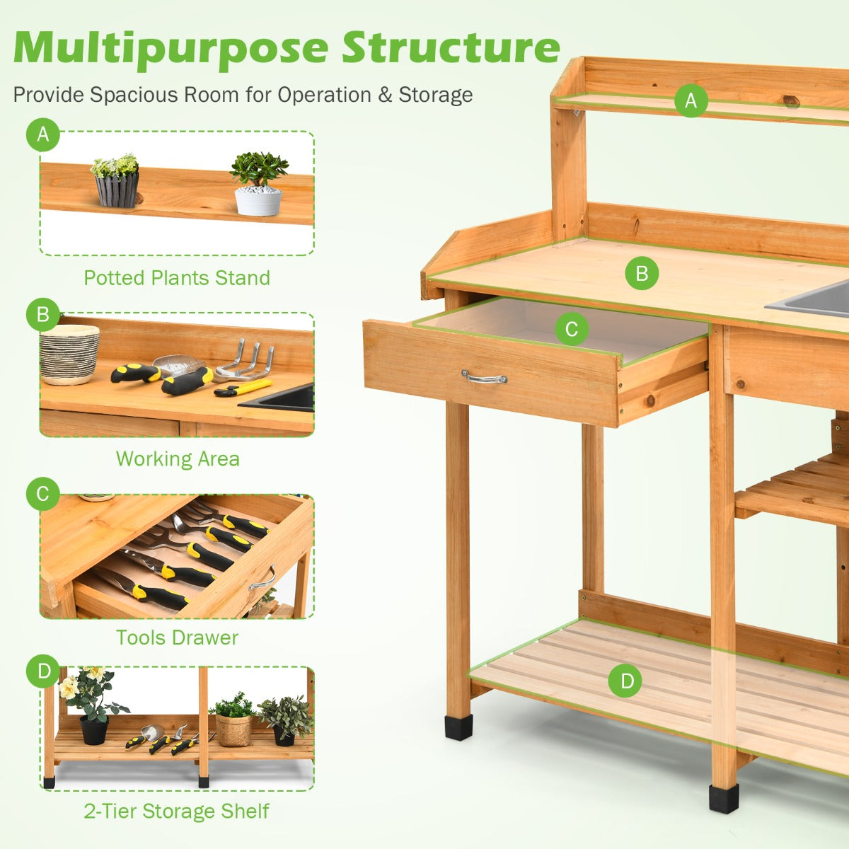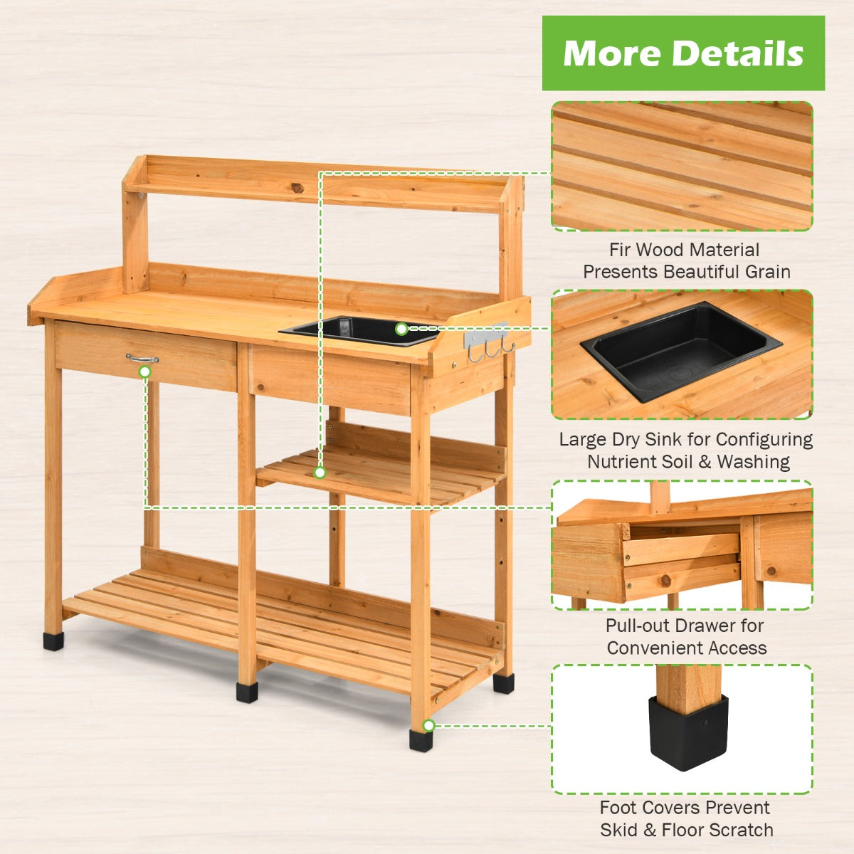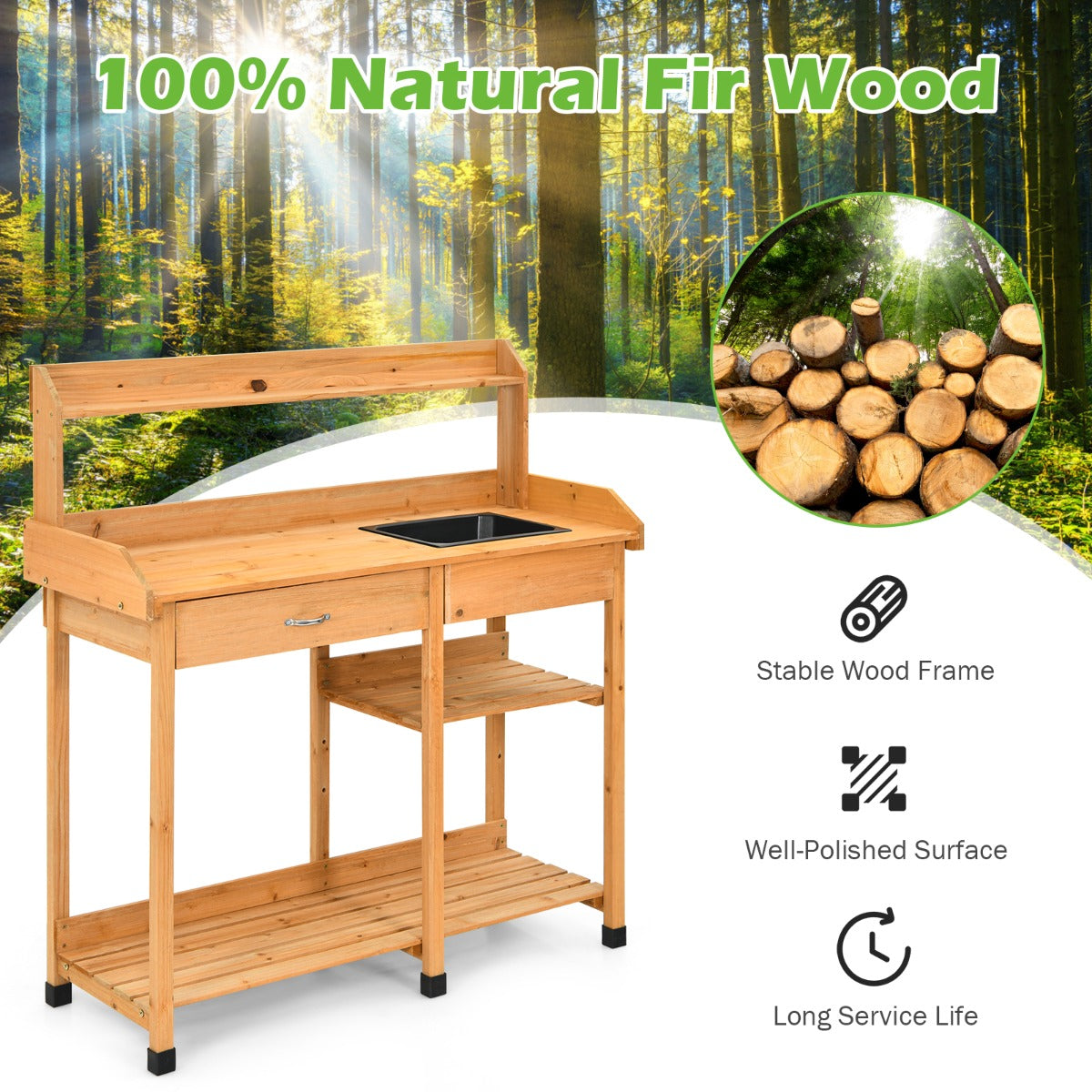 100% Natural Fir Wood: Our garden potting bench is made of premium fir wood, which will be more durable than man-made boards. It features high stability with a large weight capacity, allowing you to work freely for several years without worrying about deformation.