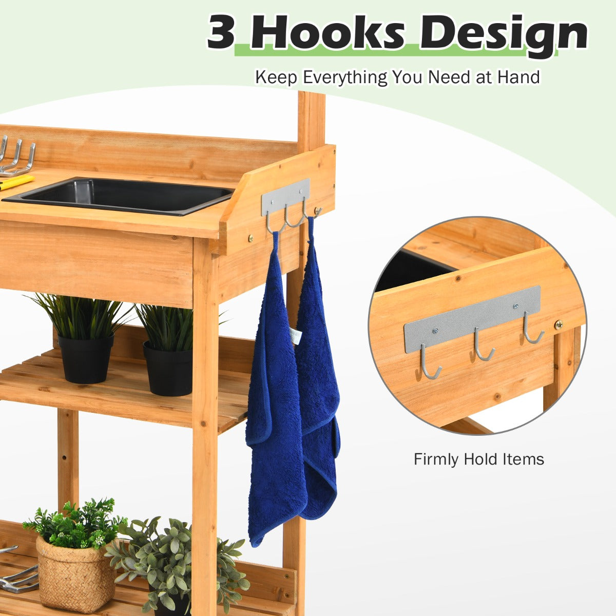 Ample Storage Space: This gardening workstation is designed with multiple display and storage areas for sorted placing, accommodating your potted plants, gardening tools, or fertilizers. And 3 side hooks provide you with great convenience to keep everything you need at hand.
