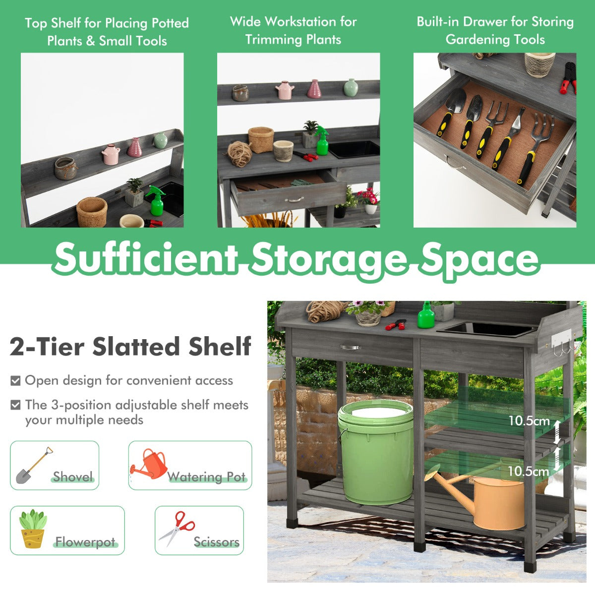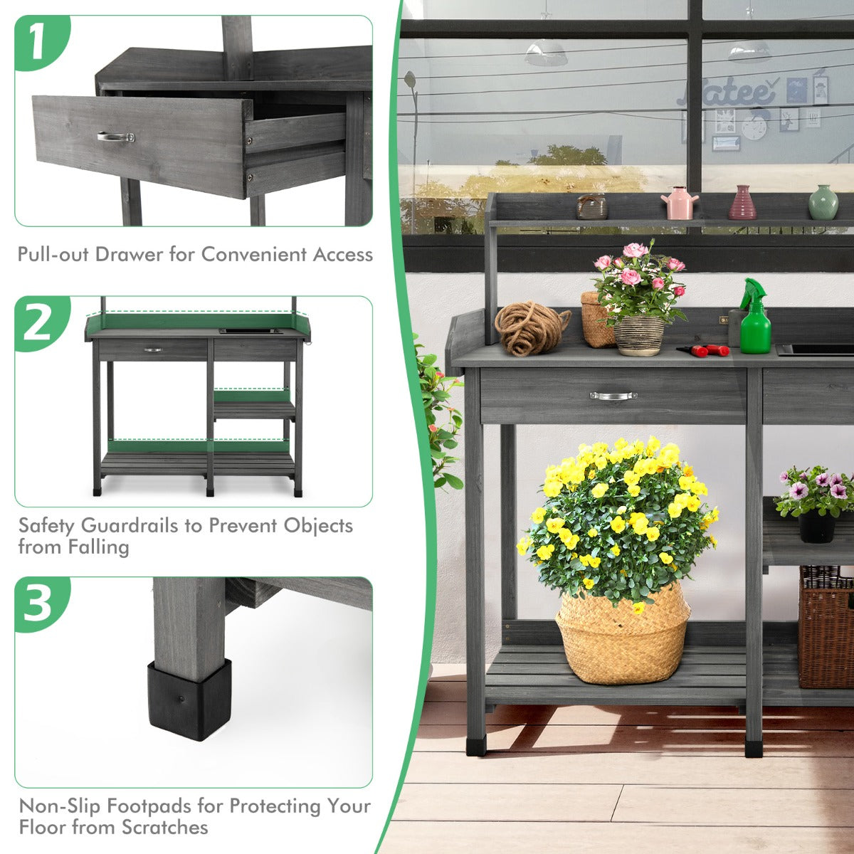 Multifunctional Sink Design: There is a large dry sink equipped on the tabletop of the garden work bench. It not only serves as a tank for configuring nutrient soil but also can be used as a water sink for washing, and meeting your basic gardening needs.