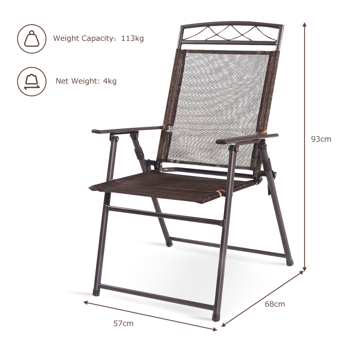 Set of 4 Patio Folding Chairs: The sleek folding chair set is an excellent addition to your patio or gardens when enjoy sunbathing during the good summertime. Featuring a sturdy but lightweight folding design, the garden chairs provide extra support and ensure long-lasting use.