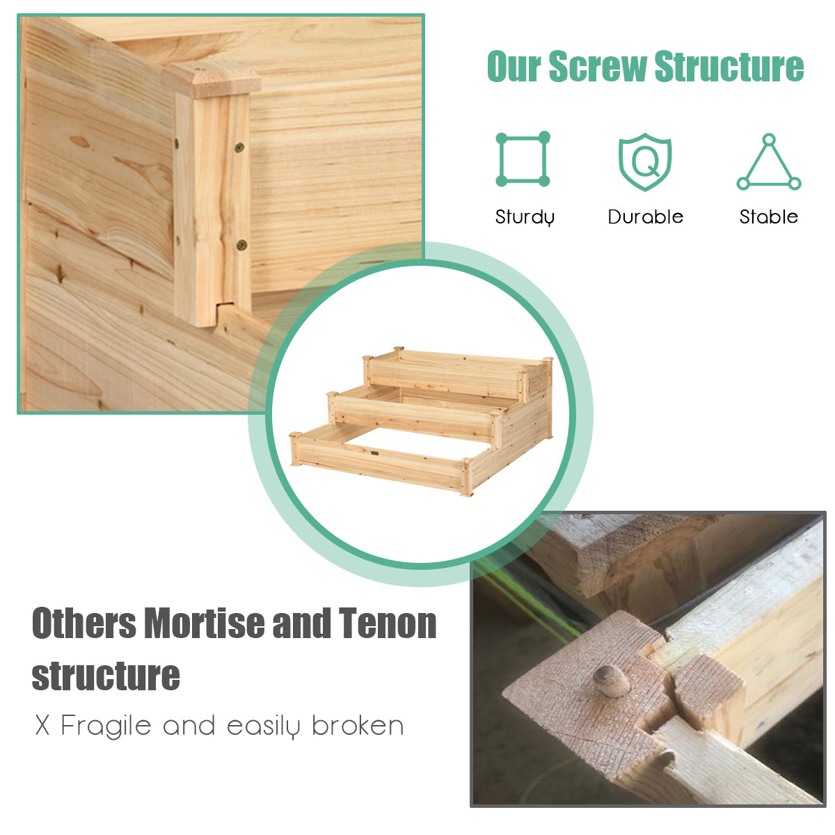 3-Tier Ample Gardening Space: This wood planter box provides 3 areas to make full use of your garden space for gardening. You can grow different plants or use different planting methods in different area, making your small garden look attractive and tidy.