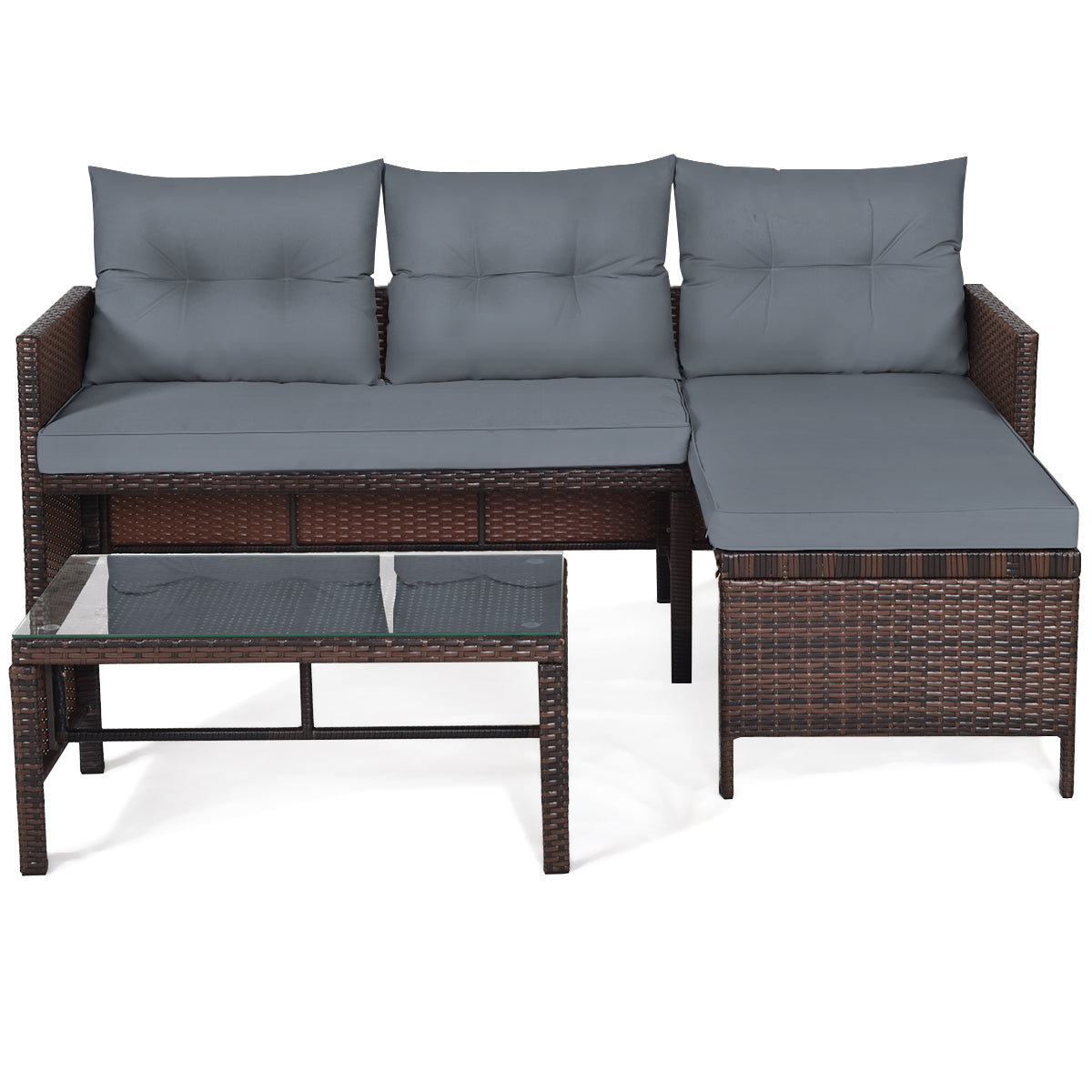 Great Outdoor Furniture Set For your patio relaxation! Our 3-piece outdoor patio furniture set includes a loveseat sofa, a corner lounge sofa, and a coffee table, which can be a piece of perfect outdoor furniture set for eating, chatting with...View More