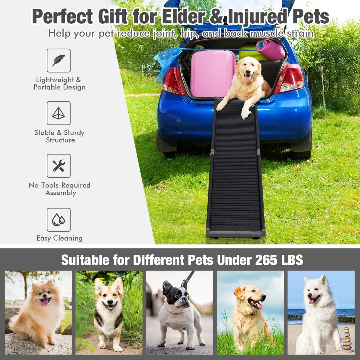 Fit Dogs of All Ages: The portable pet ramp is designed for assisting pets up patio stairs, sofas, beds, and more. Whether puppies, senior dogs, injured or arthritic pets, it can be a perfect choice, helping your pet reduce joint, hip, and back muscle strain while providing them with convenient travel.