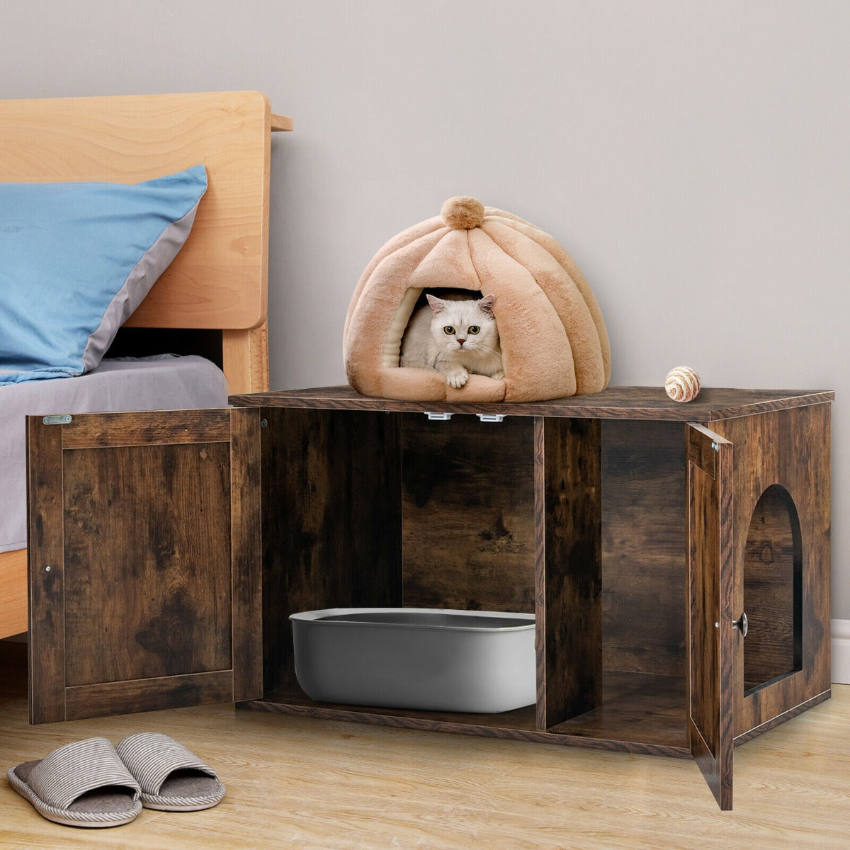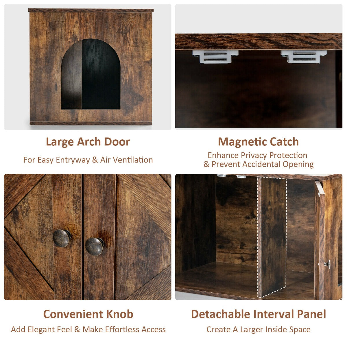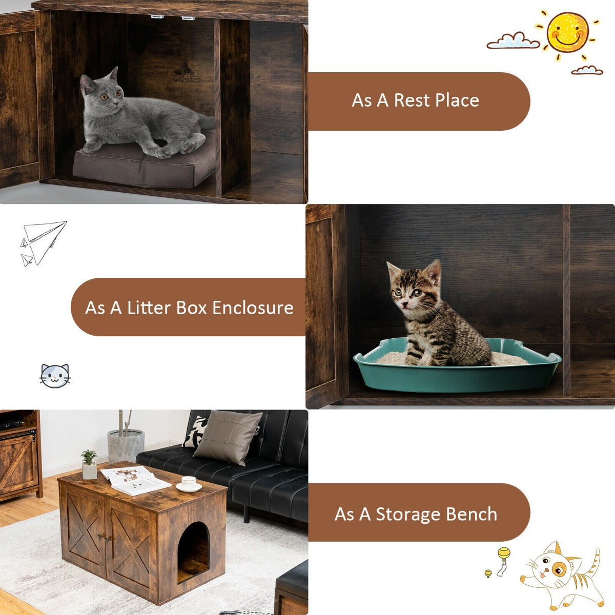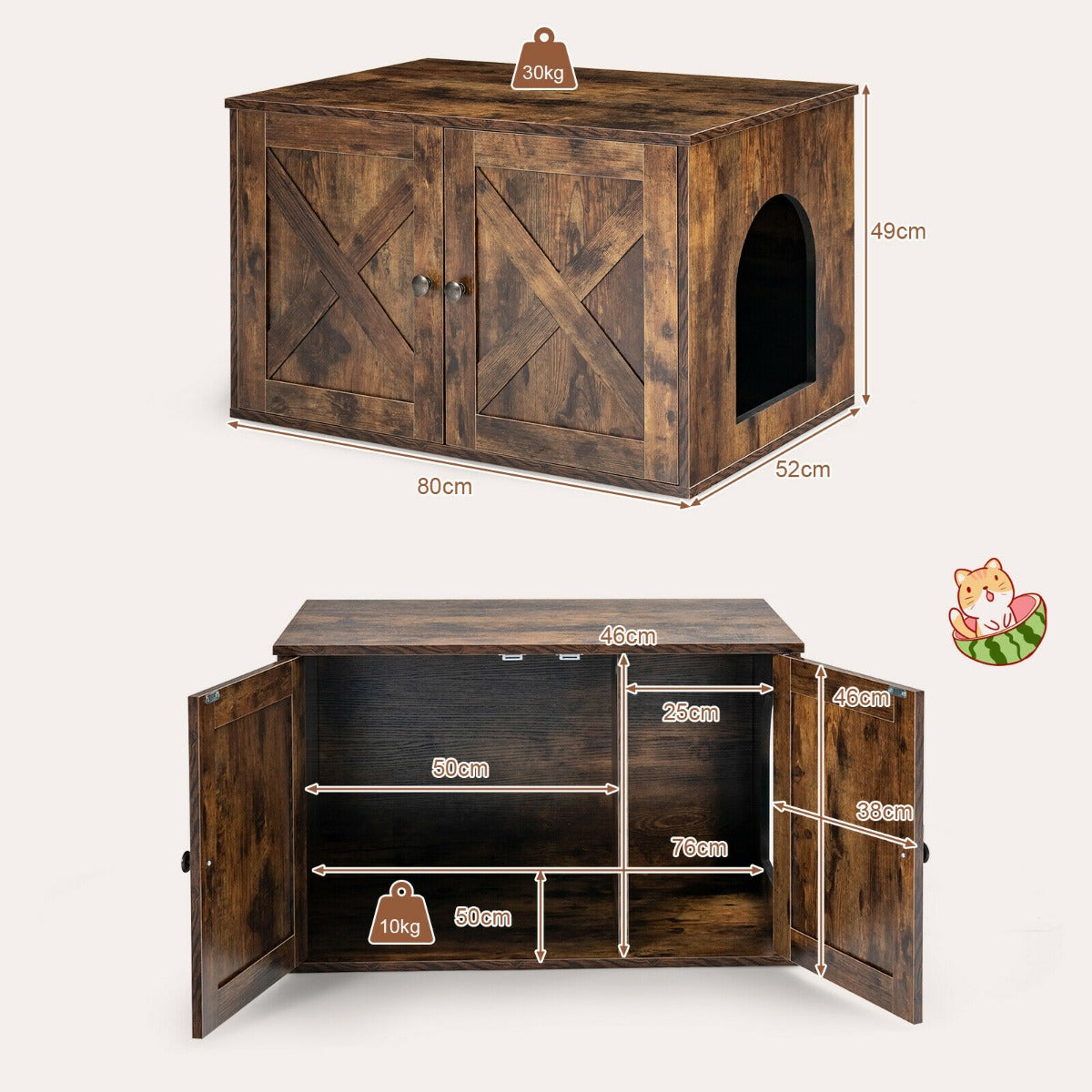 Wide Application: One piece of furniture will meet the need of you and your kitten at the same time. In addition, rustic exterior finish and unique barn doors lend a dash of charm, enhancing the cat litter box enclosure's decorative feel. This practical cat house will perfectly blend with any kind of decoration style in your home.