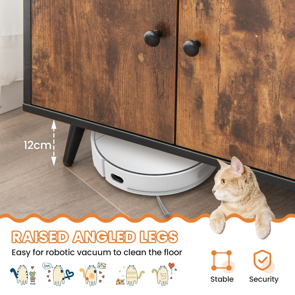 Upgraded Stability & Durability: Made of premium EO grade engineered wood and MDF, the indoor cat house is more solid, wear-resistant to support longer time. In addition, the cat washroom cabinet is equipped with unique slanted metal legs and anti-tipping device to improve overall stability and prevent wobbling.