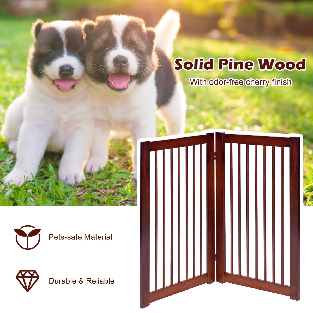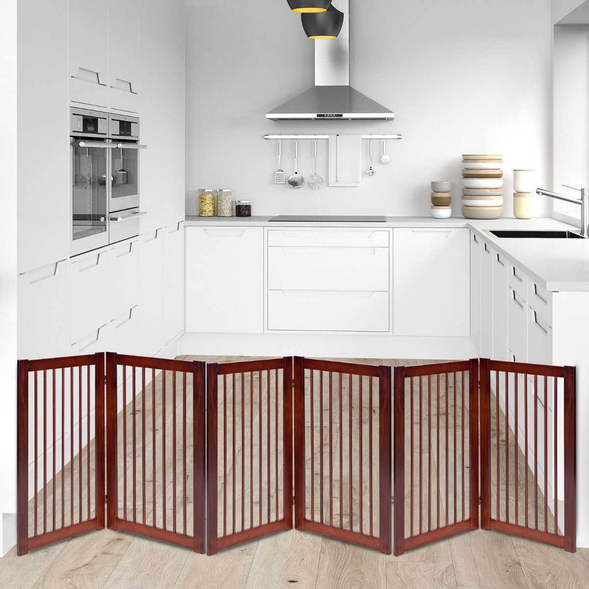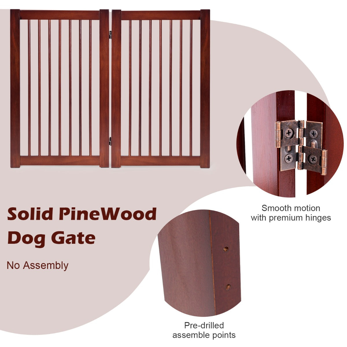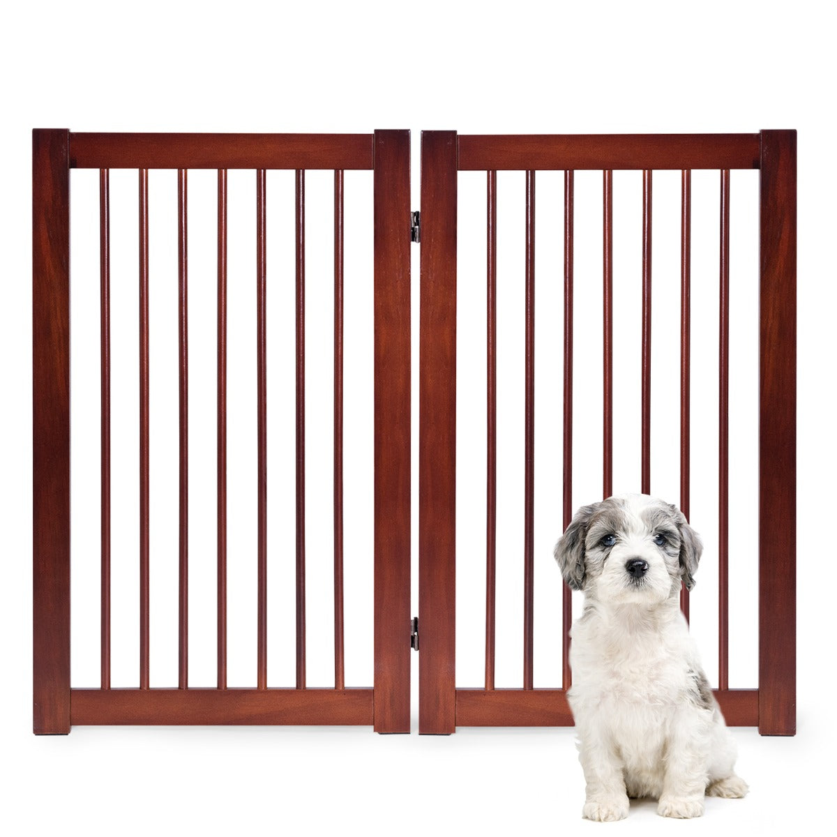 Easy Installation & Cleaning Process: With detailed instruction and all needed accessories, you can easily complete the assembly of our freestanding pet gate. Besides, coated with cherish finish, this beautiful dog fence is easy to clean with a damp cloth.