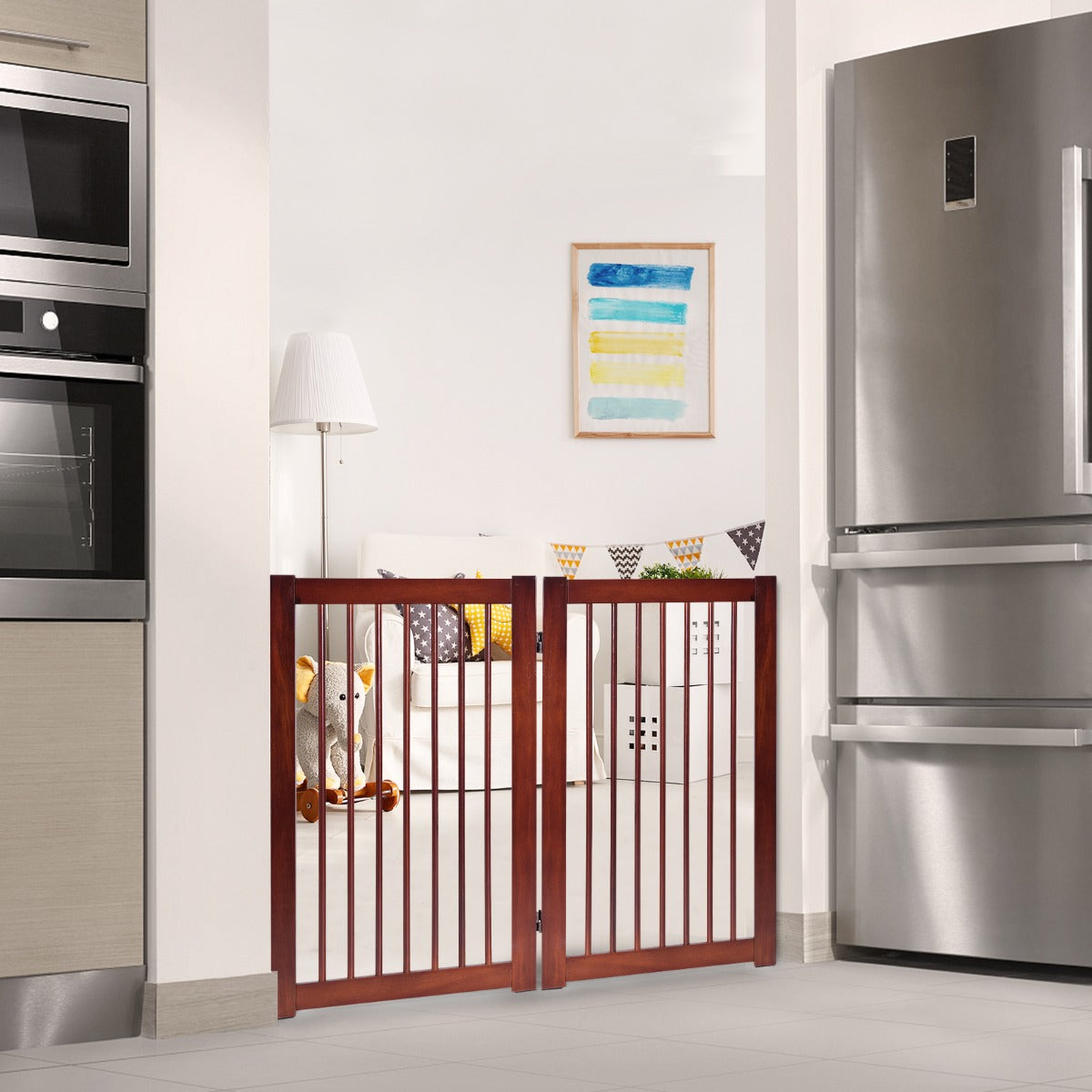 High-quality Materials: Our 91.5cm dog gate is made of natural pine wood, which is sturdy and durable for long service life. In addition, the surface is carefully coated with smooth and non-toxic coating. You can rest assured that the pet fence gives your furry friends with a reliable playing space.