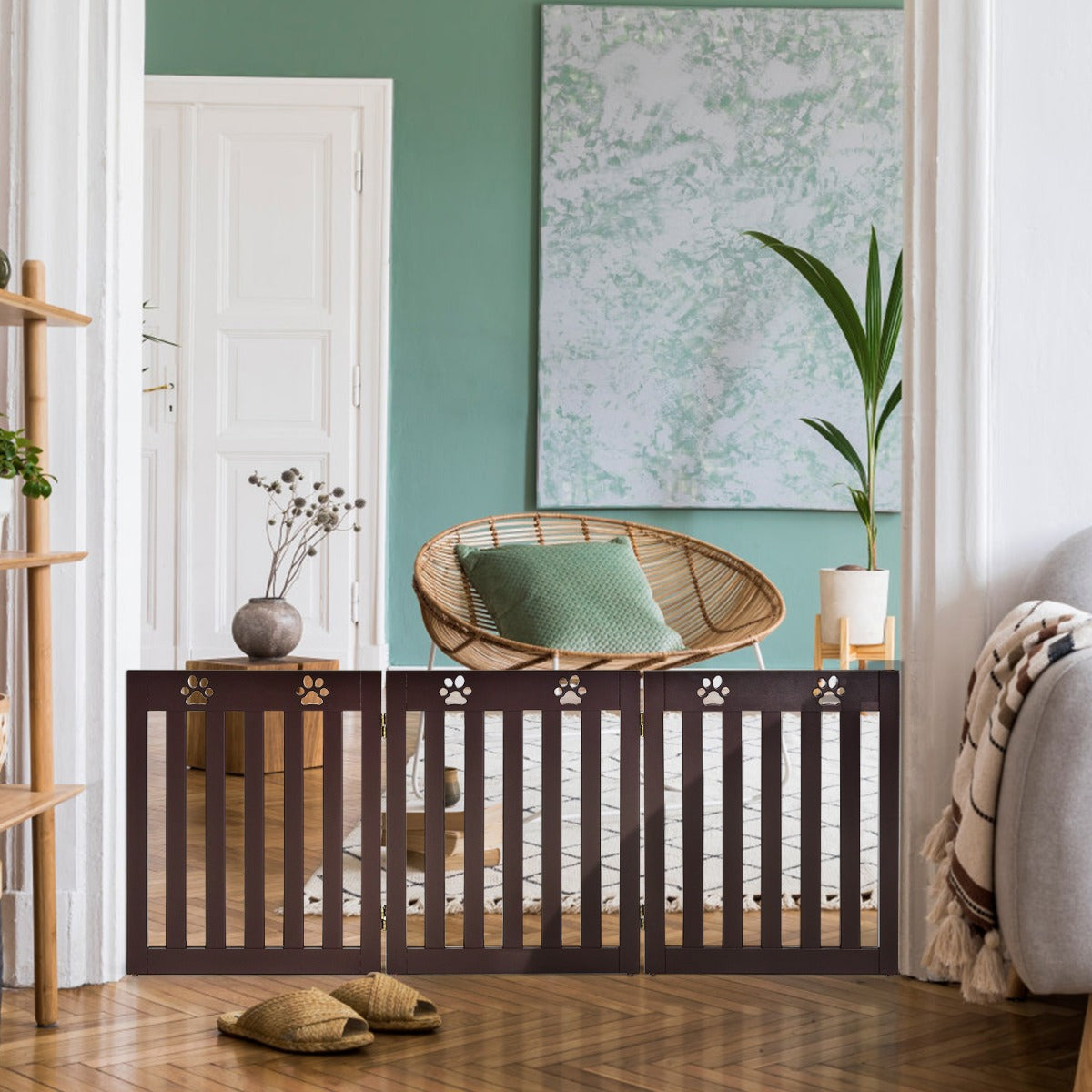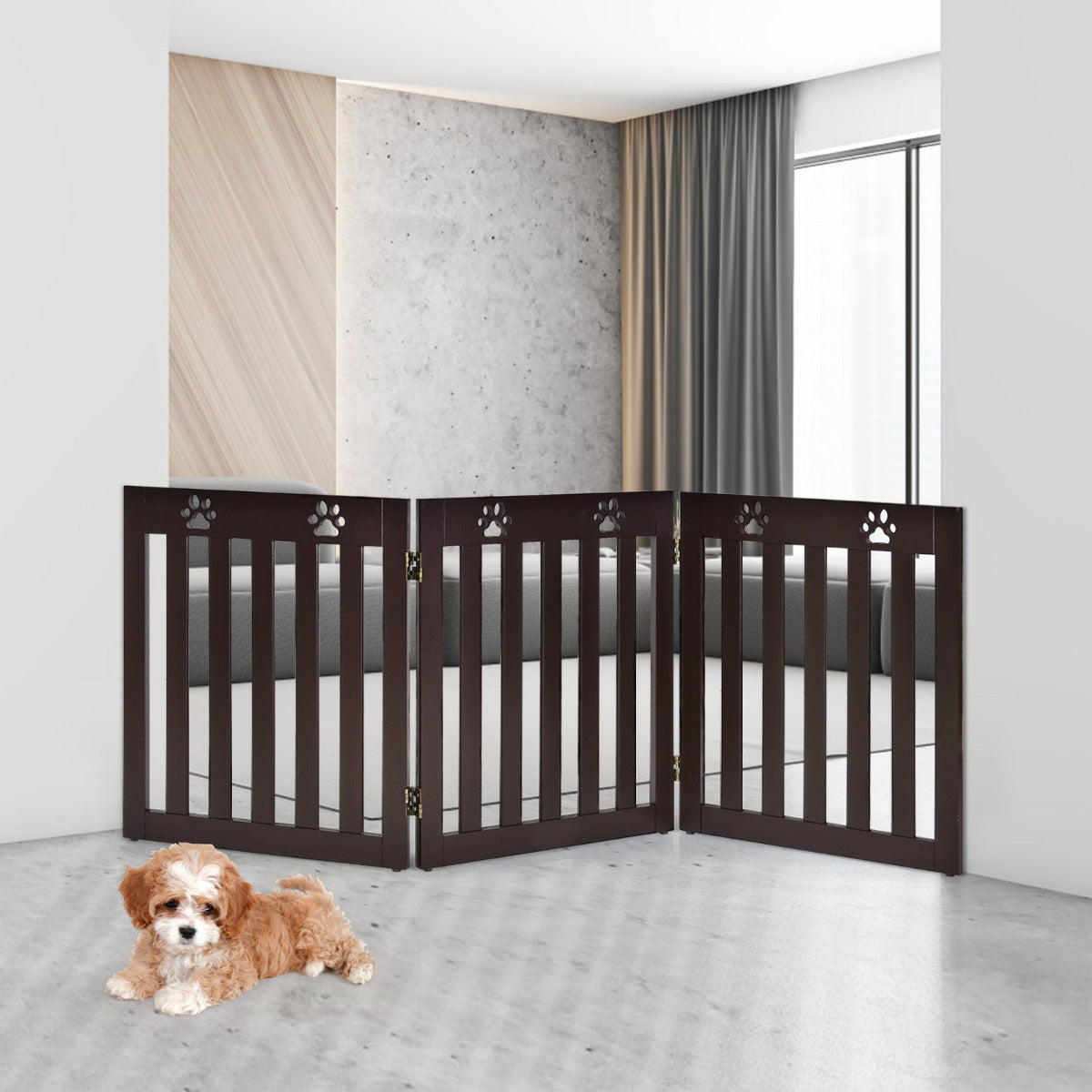 Foldable & Expandable Design: Featuring a durable 360° metal hinges, this wooden god gate can be folded into Z-shape or expanded to U-shape which is suitable for different places for great convenience. In addition, the foldable design allows you to move or store it with ease.