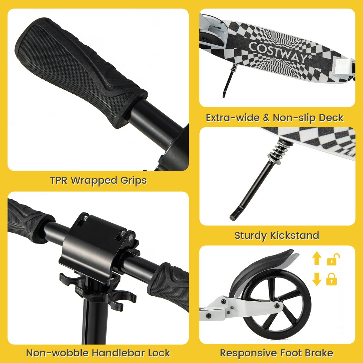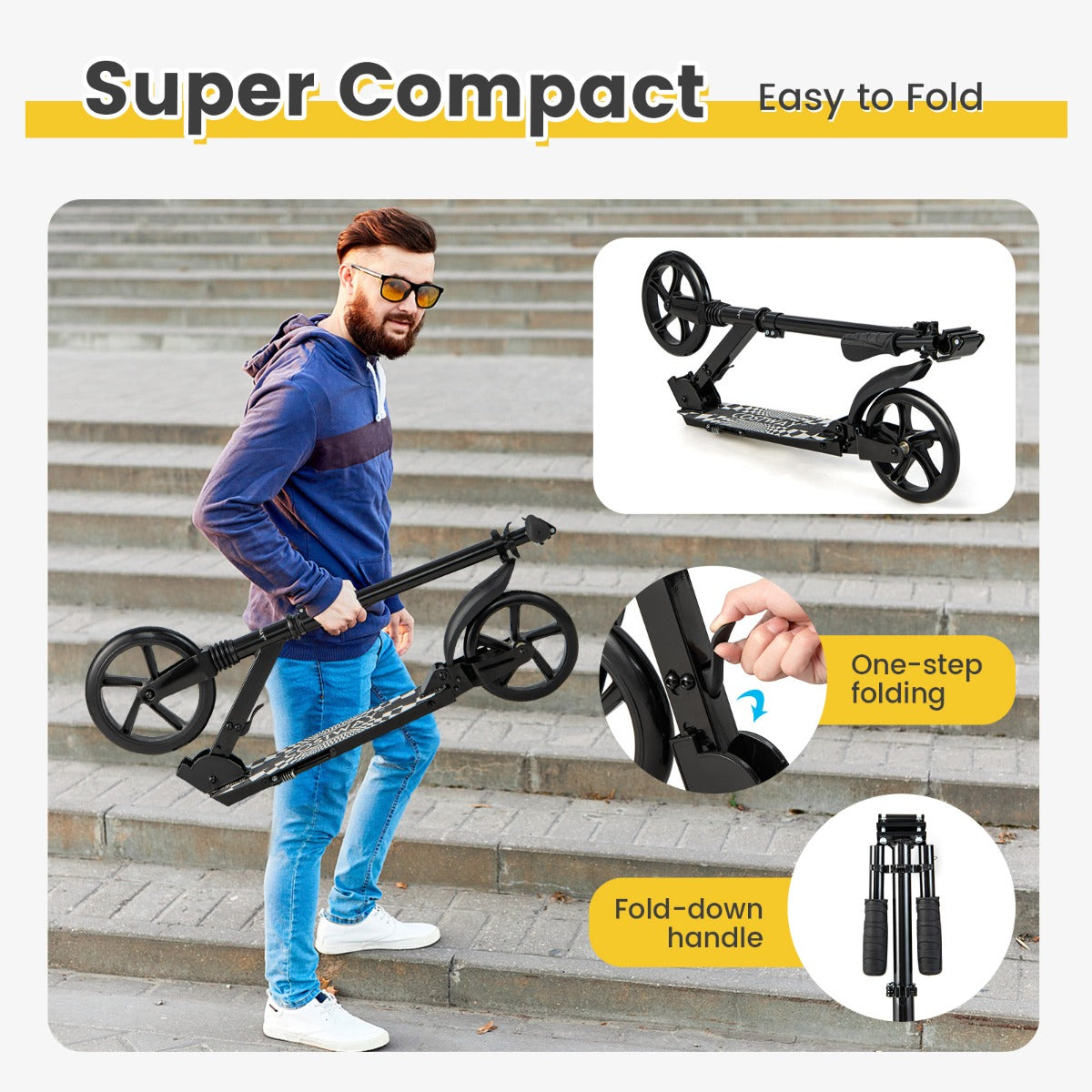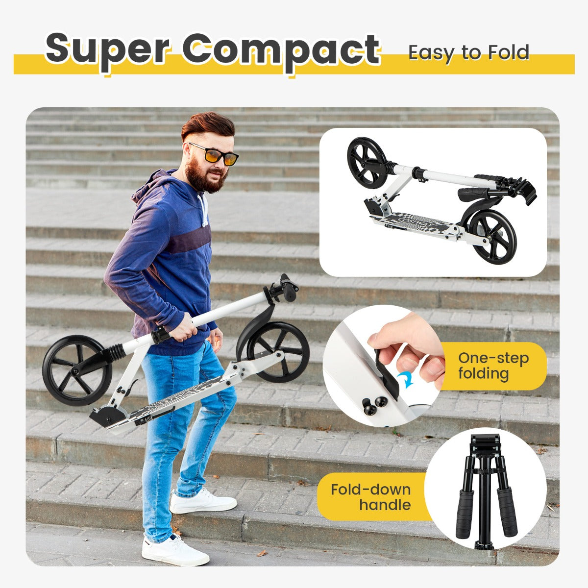 Foldable & Lightweight Design: Featuring a one-second folding design, the high-quality kick scooter can be easily folded into a compact size. What's more, it weighs only 6 kg, making transportation much easier for you.