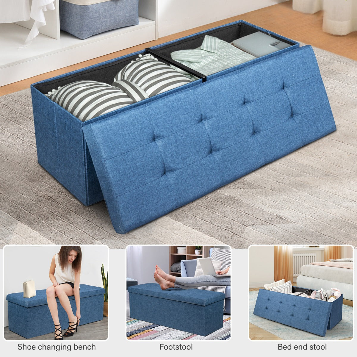 Sturdy & Stable Frame: Featuring a sturdy MDF frame, this folding storage ottoman has a high load bearing capacity of 150kg, which can easily seat 1-2 adults without easy bending or deformation. In addition, the metal divider in the middle provides additional strong support.