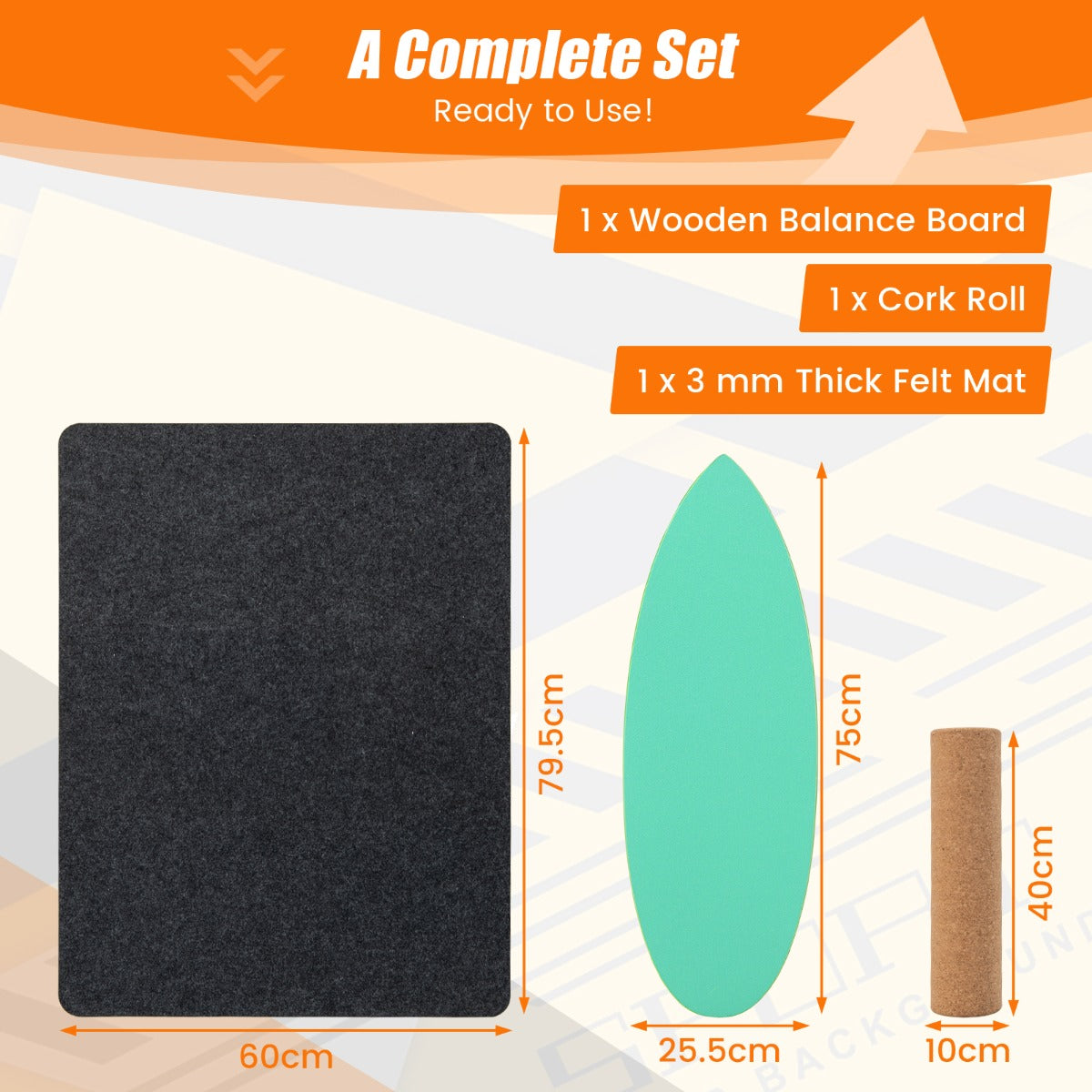 Aussies Market 3-in-1 Wooden Balance Board Trainer with Roller& Blanket-Green