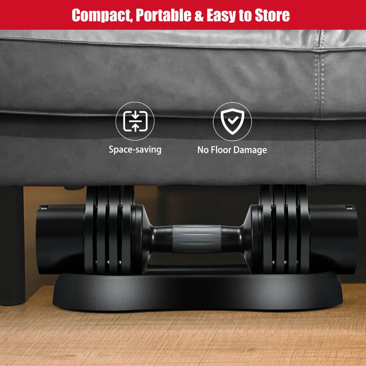 Are you considering buying a set of dumbbells for exercise, but worried about it taking up too much space? Our 5-in-1 dumbbells can help you get rid of those worries. It has a compact tray specially designed to hold the...View More