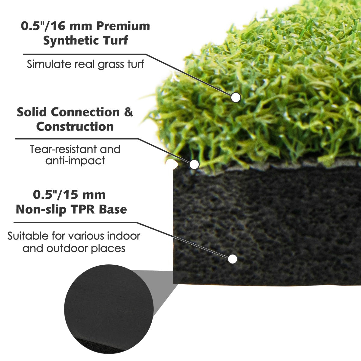 Enjoy a Real Feeling of Fairway Anywhere: Our golf hitting mat is equipped with synthetic turf with a thickness of up to 16 mm, which stimulates real grass turf. Thus, you are allowed to enjoy realistic and professional turf that offers you a real feeling of a fairway anywhere, such as your backyard, patio, living room and more.