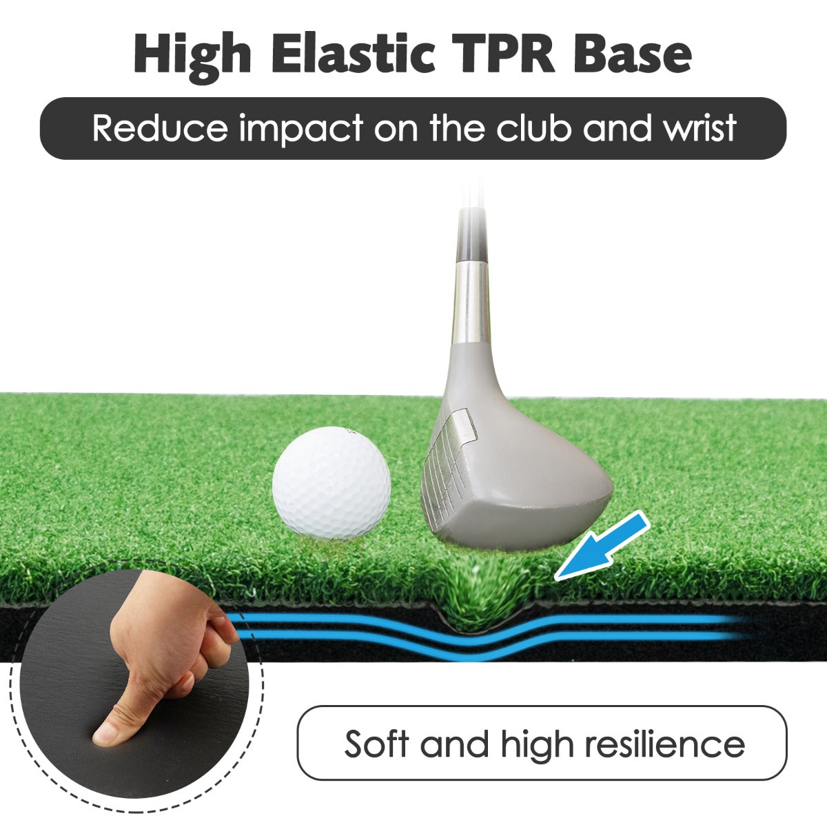 Reduce Impact on The Club & Wrist: The base of this golf hitting mat is made of 15 mm soft and highly resilient TPR material. The thick base can effectively absorb the impact of the club when you hit the golf mat, which ensures long service life for the club, more importantly, protects your wrists.