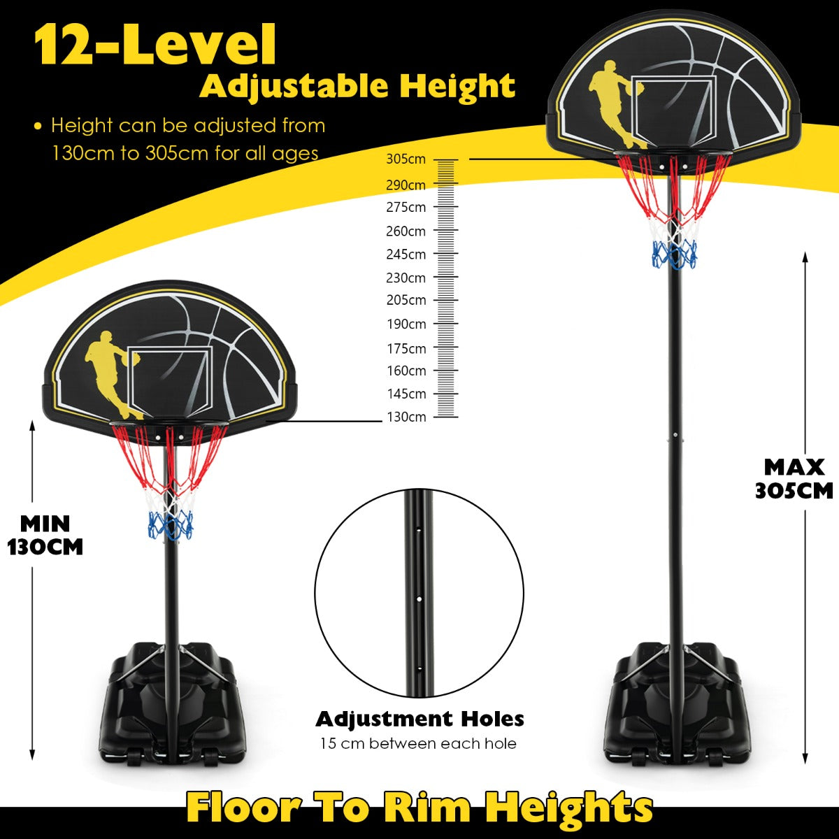Bring Basketball Fun to All Ages: This height-adjustable basketball hoop features 12-level adjustable height from 130 cm to 305 cm, which is suitable for kids, teenagers and adults. This basketball hoop uses a 45 cm standard-size basketball rim to bring you an unmatched user experience.