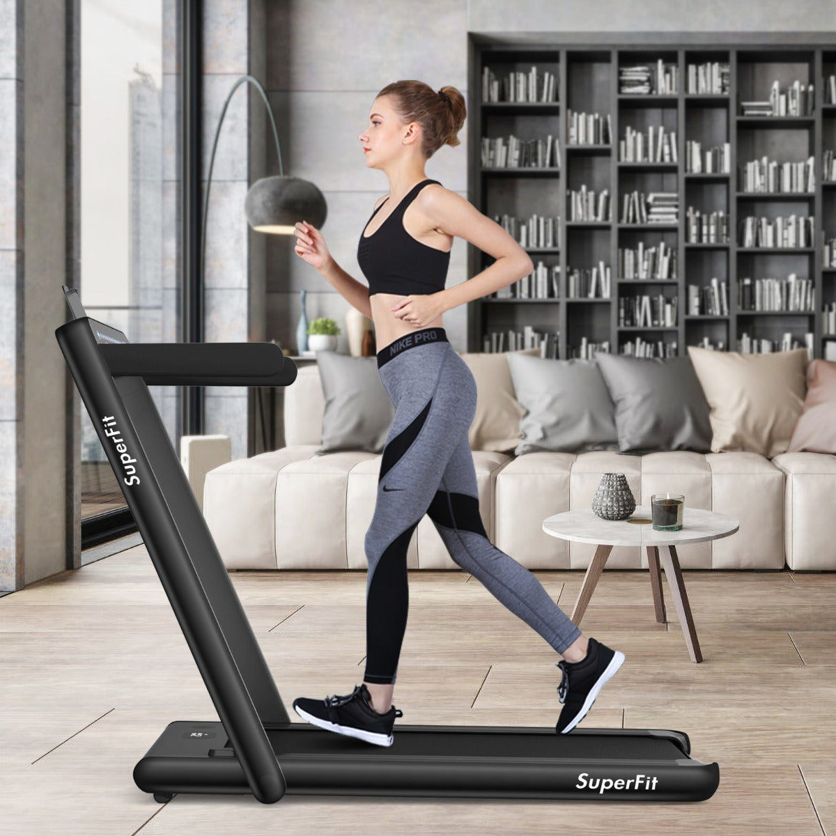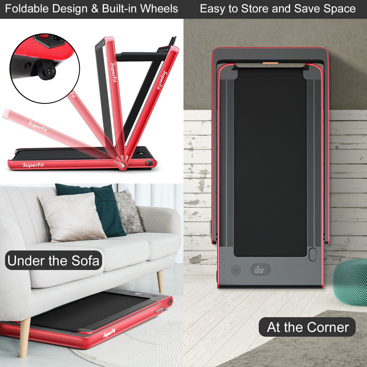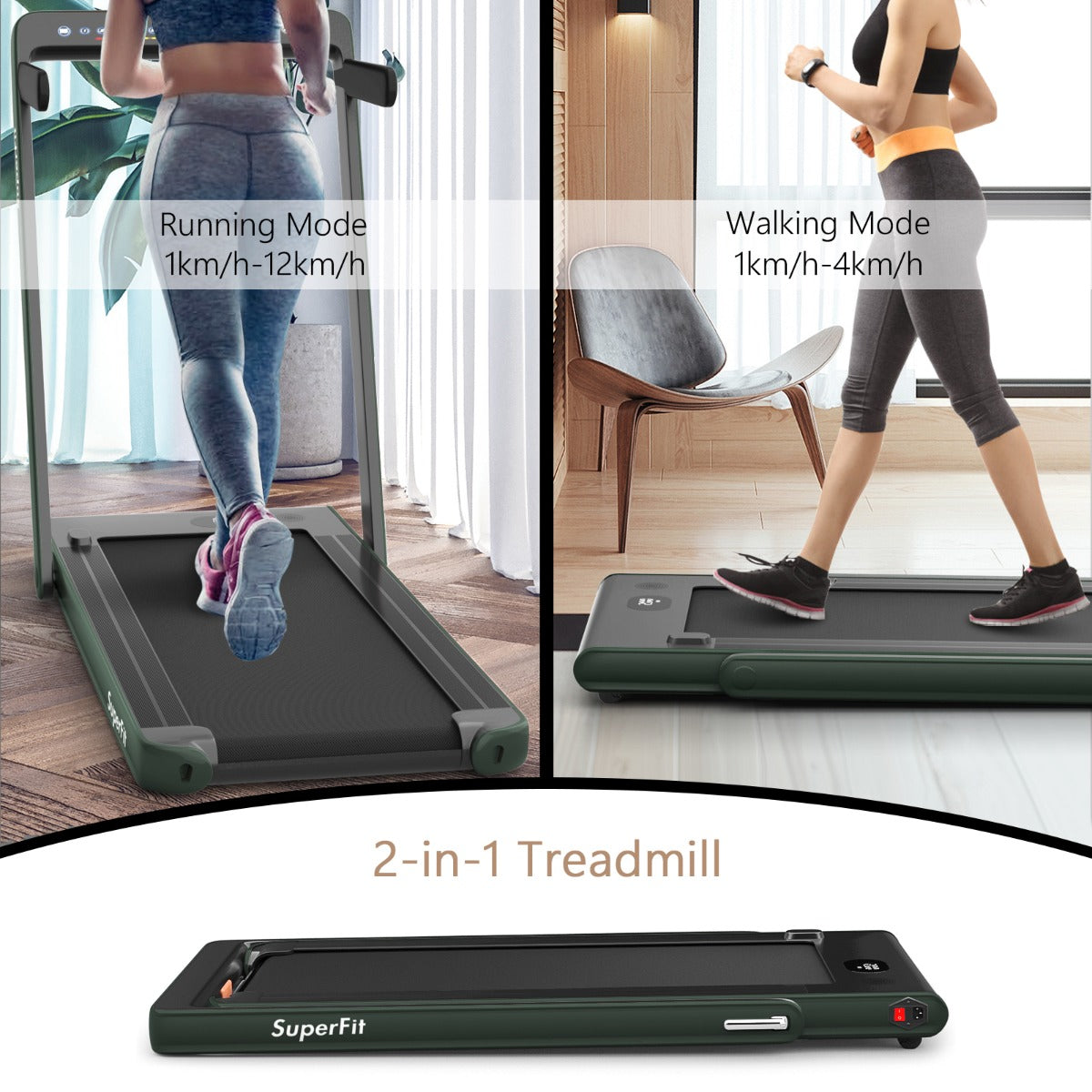 2 in 1 Electric Treadmill: This 2 in 1 folding treadmill is featured with 2 modes to meet your different using needs. When you need to exercise vigorously, you can use the running mode (1- 12 km/h). In addition, you are able to use the remote control to operate walking mode (1 -4 km/h).
