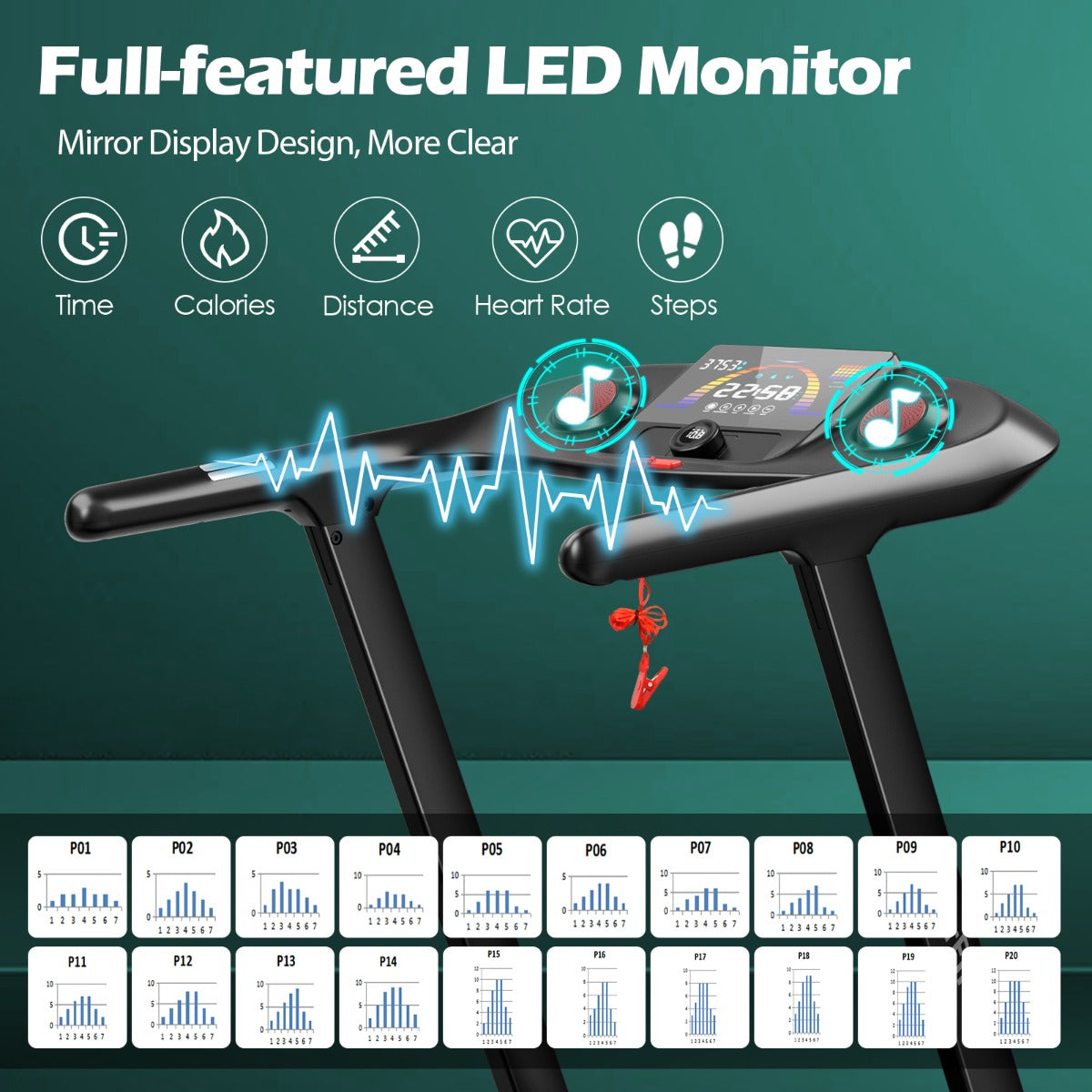 Aussies Market 4.75HP Folding Treadmill with 15% Inclination for Gym