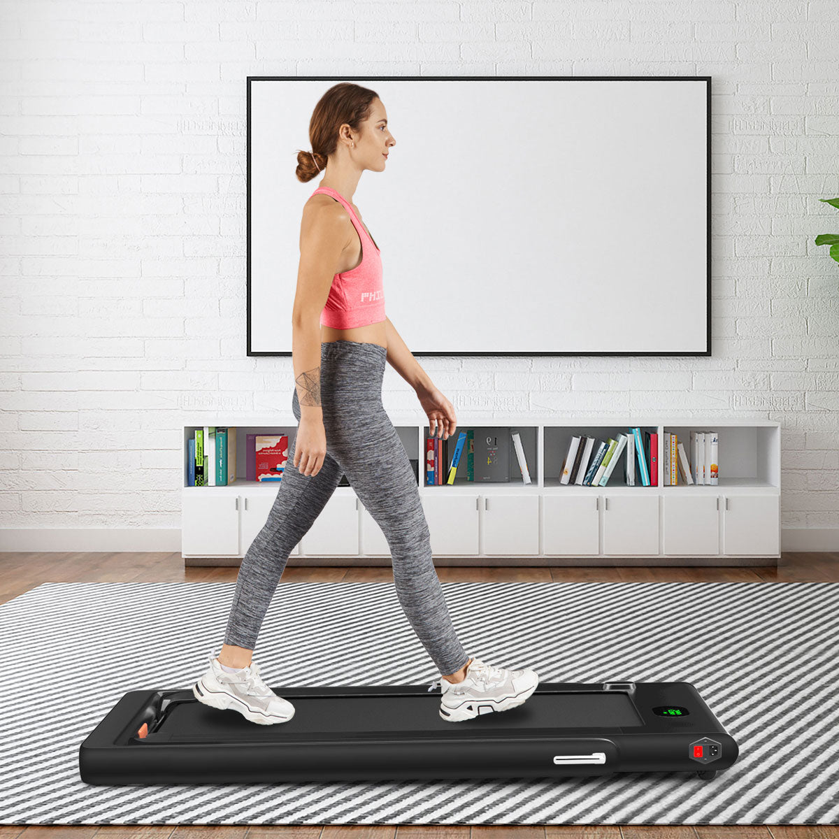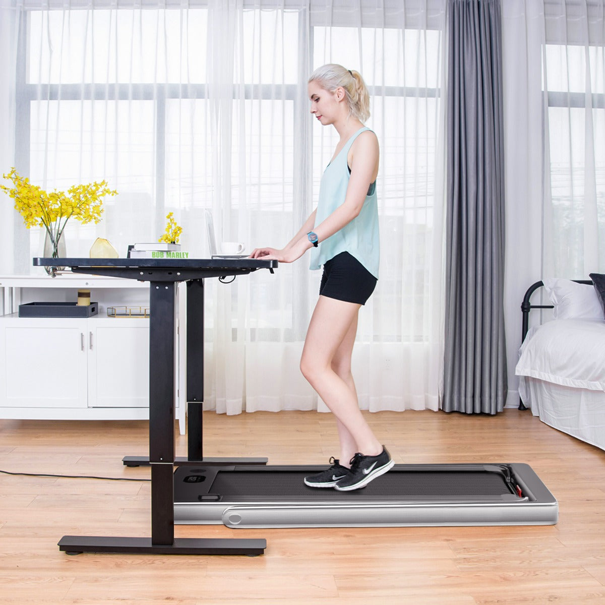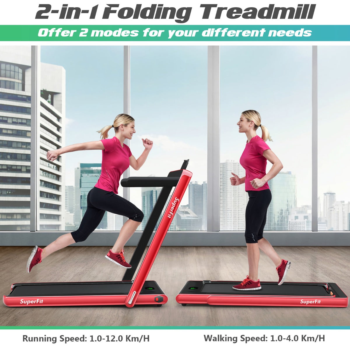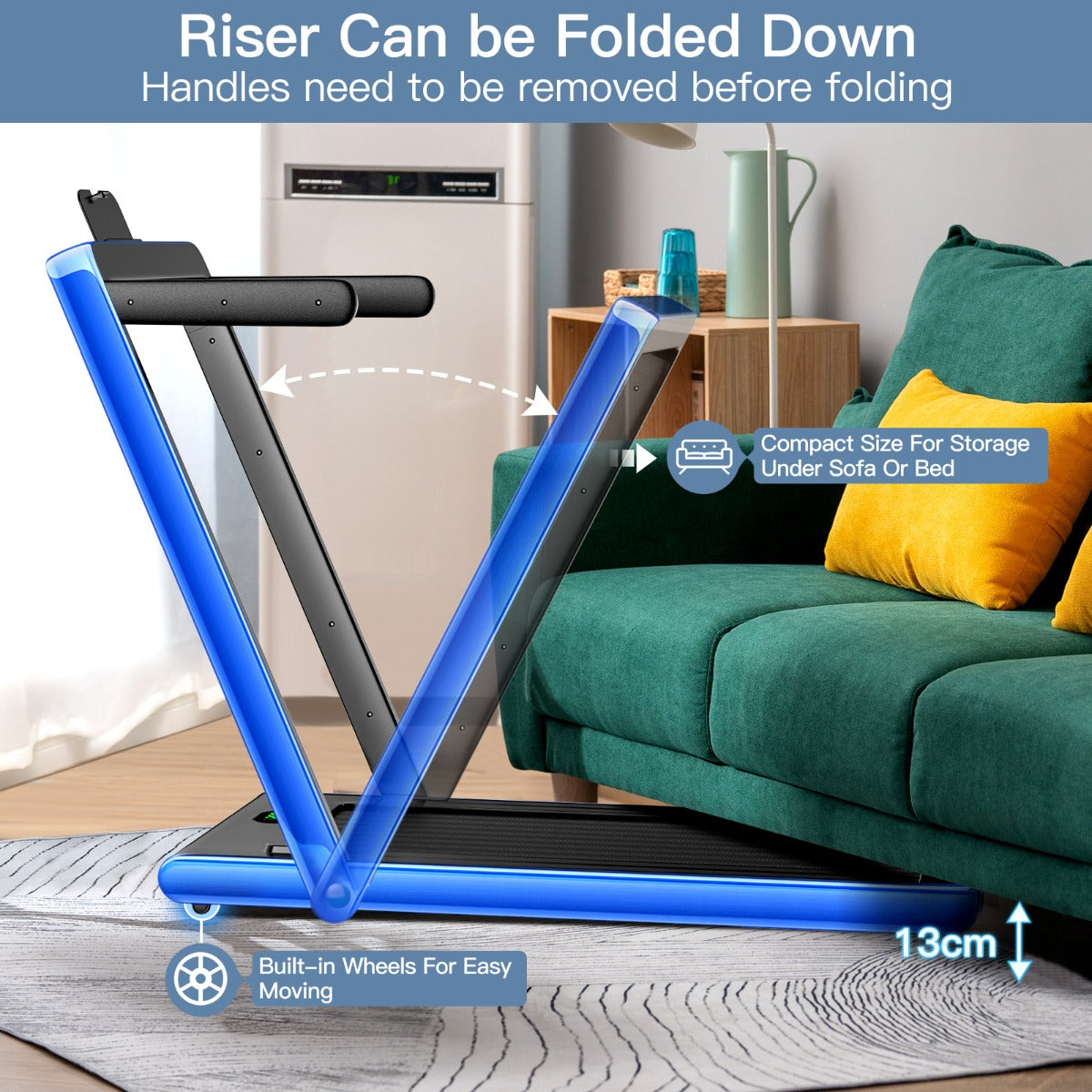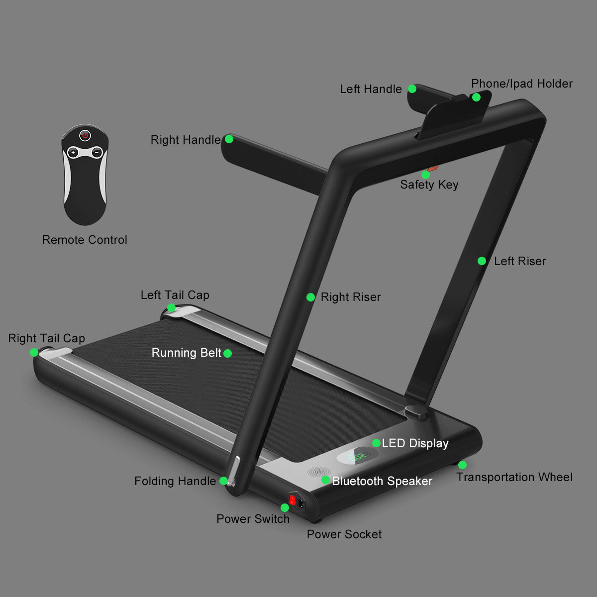 2 in 1 Running & Walking Treadmill: Compared to ordinary treadmills, our 2-in-1 treadmill has 2 modes to meet your different sports needs, so you can easily have a healthy body. When the riser is folded, it can be used as an under desk treadmill at a speed of 1-4km/h, so you can do other things while walking. When the handrail is raised, the running speed is 1-12km/h and you can run to reach your fitness goal.