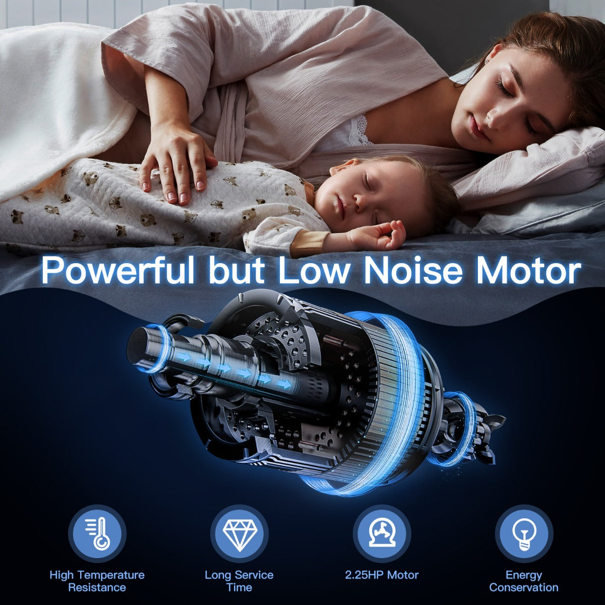 Built-in 2.25HP motor creates a quiet environment without disturbing others